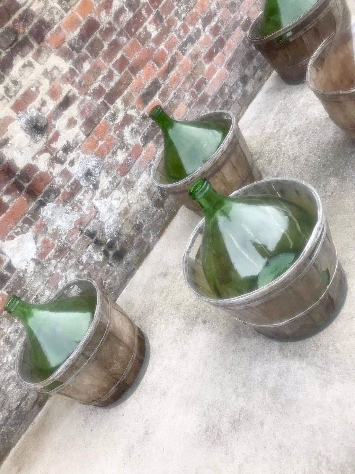 Feel free to check out my other listings on my two profiles, pseudo pouletaugingembre and altaria59. Vintage dame Jeanne, 110€ each, antique bottles Price for the lot, can be separated. Basket diameter 54cm x h40cm Bottle diameter 45cm at the widest x h64cm. Normal signs of use, they are vintage, see photos. No shipping, delivery possible via carrier (e.g., 30€ for the dame Jeanne to Paris and the Paris region, contact me for other destinations). Delivery times of 2 to 4 days are imposed by the carrier and are therefore given for informational purposes only. Retro farmhouse decoration vase country.