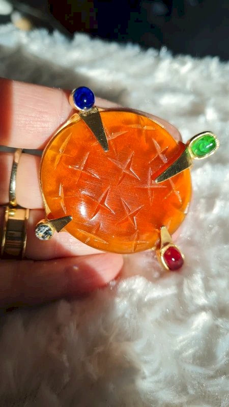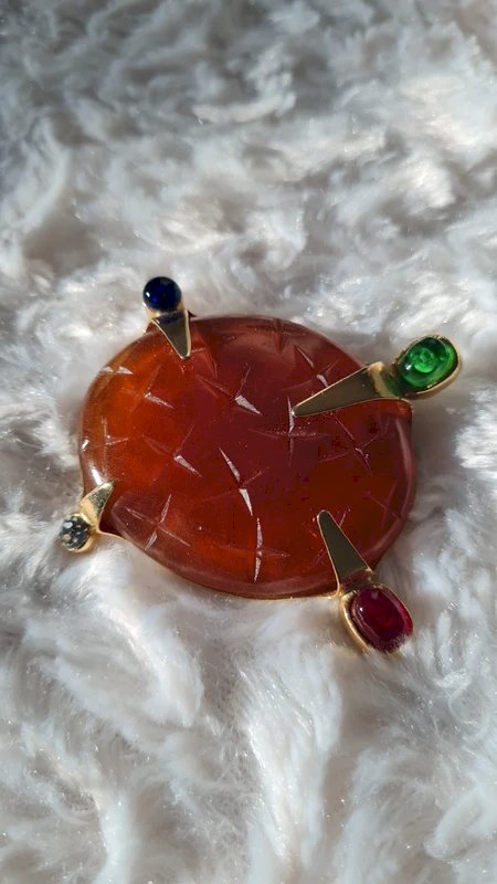 Above 25€, please choose a carrier if possible. Take the opportunity to buy in bulk: - 5 items - 10% - 10 items - 20% - 20 items - 30%. Please carefully look at the photos to see the imperfections: micro loss of gilding. Dimensions: height: 5 cm, width: 5.7 cm. #brooch #chic #gift #daumbrooch #collection #jewelry #daumjewelry #hiltonmcconnico&Daum #gold #goldbrooch #hiltonmcconnico&Daum...