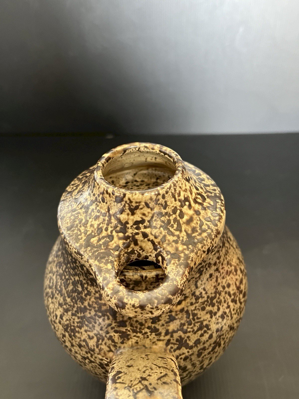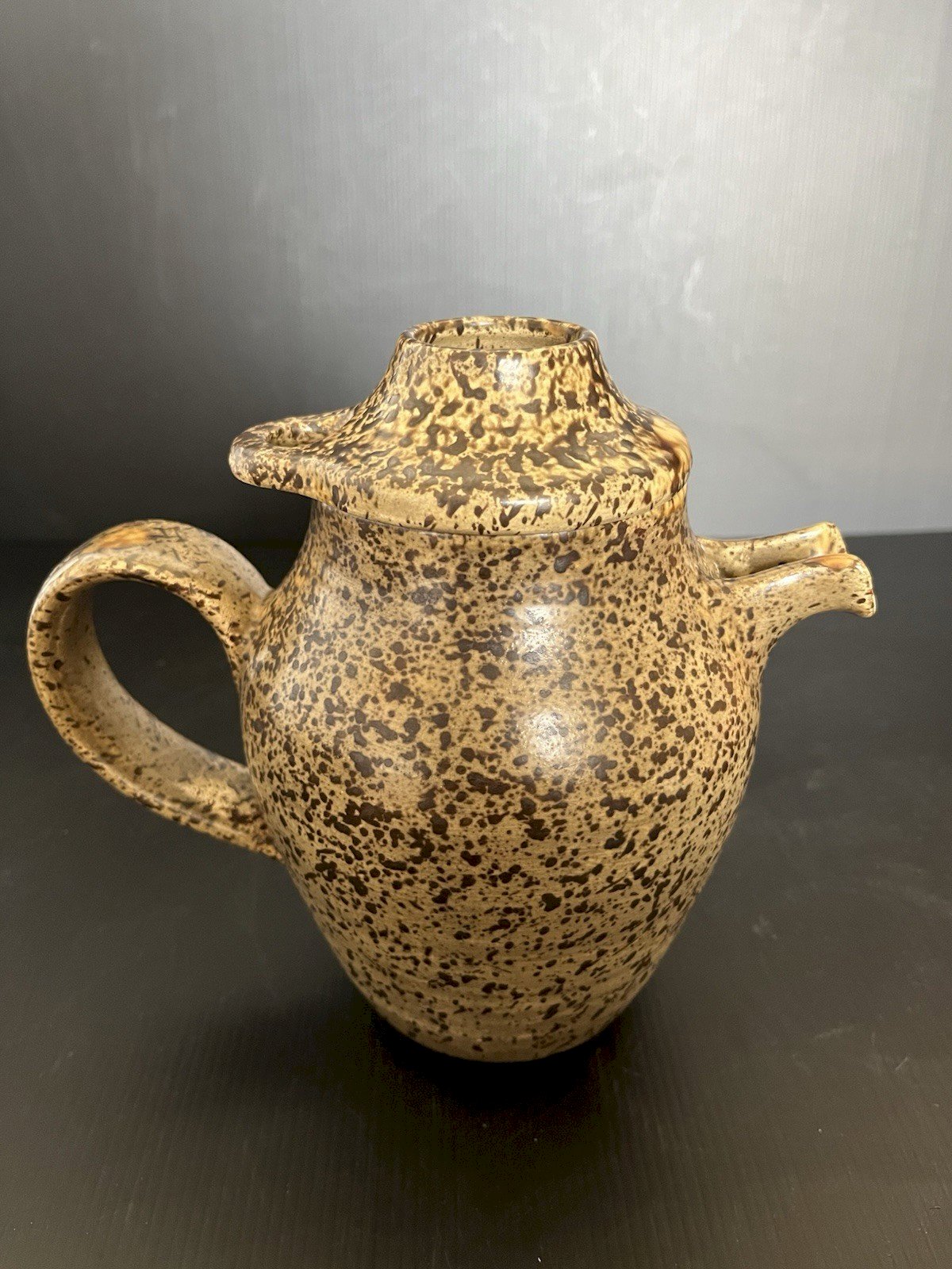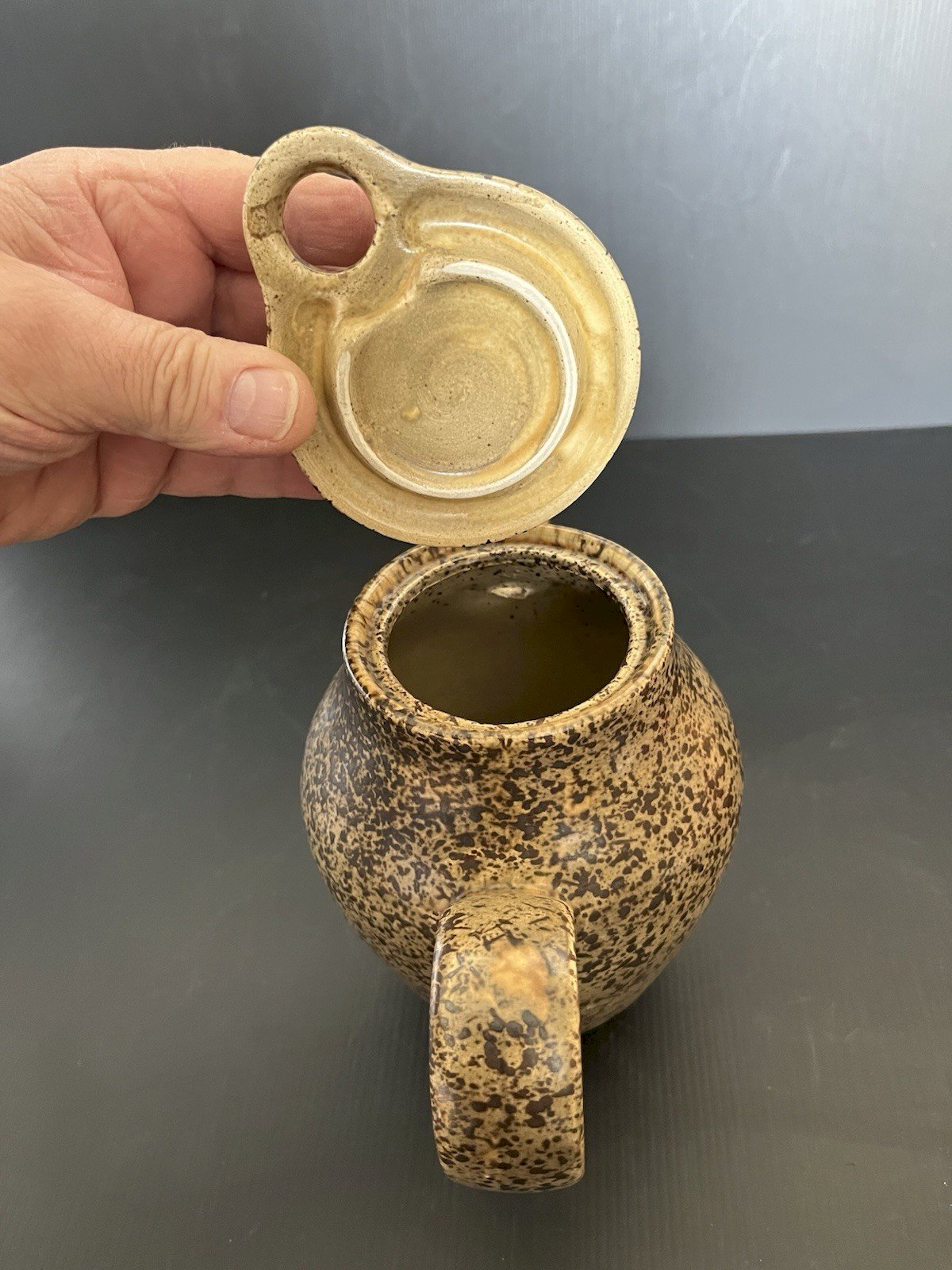 Beautiful futuristic design for this speckled ceramic jug made by the potters of the abbey (Salins les Bains). Good condition. Note that the lid has a diameter that does not cover the entire top (see last photo). Height 20 cm, width 20 cm, weight 850 g. Look at the photos above which will also serve as a description. Careful and secure packaging with the possibility of shipping via post to be selected at the time of purchase for calculating shipping costs (otherwise, standard Mondial Relay shipping). Thank you all and happy hunting in my shop. Returns accepted within 14 days of receiving the item, must be returned in its original packaging and in its initial condition. No refunds for items returned broken or lost by the carrier. Return shipping costs are the responsibility of the buyer. Don’t hesitate to add my shop to your favorites! Condition: Used: Item that has been used. Item shows some superficial wear marks, ... Used: Item that has been used. Item shows some superficial wear marks, fully operational and functioning correctly. It may be a demonstration model or an item returned to the store after a short period of use. Potential imperfections. Type: coffee maker Brand: Les Potiers De L’abbaye Country of origin: France Material: Ceramic Plate diameter: 6 cm.