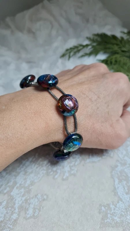 Above €25, please choose a carrier if possible. Take advantage of bulk buying: - 5 items - 10% - 10 items - 20% - 20 items - 30%. Be sure to look at the photos to see imperfections. Dimensions: maximum length: 21 cm, width: 1.7 cm #bracelet #chic #gift #collection #jewel #vintagejewel #vintagebracelet #dichroic #dichroicbracelet...