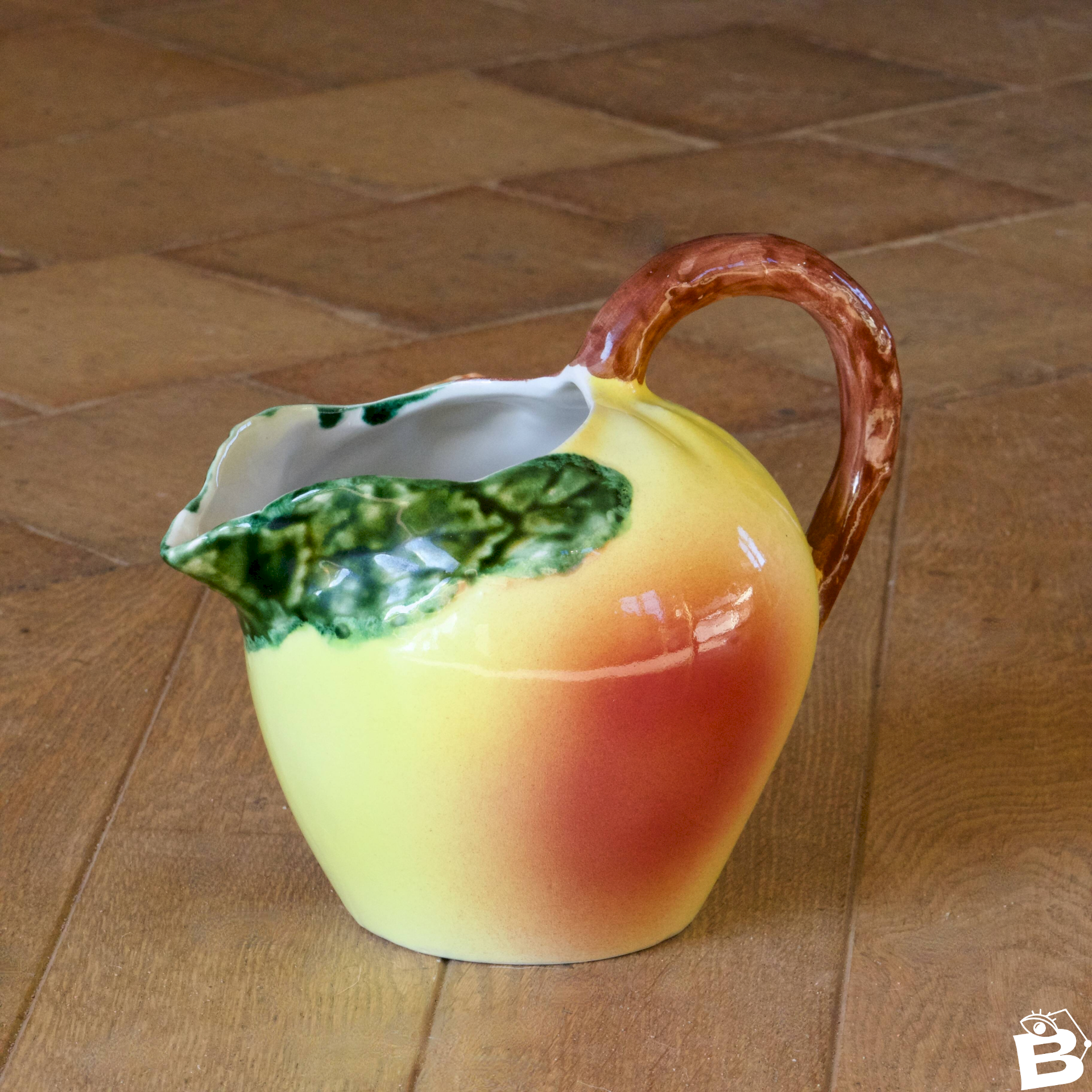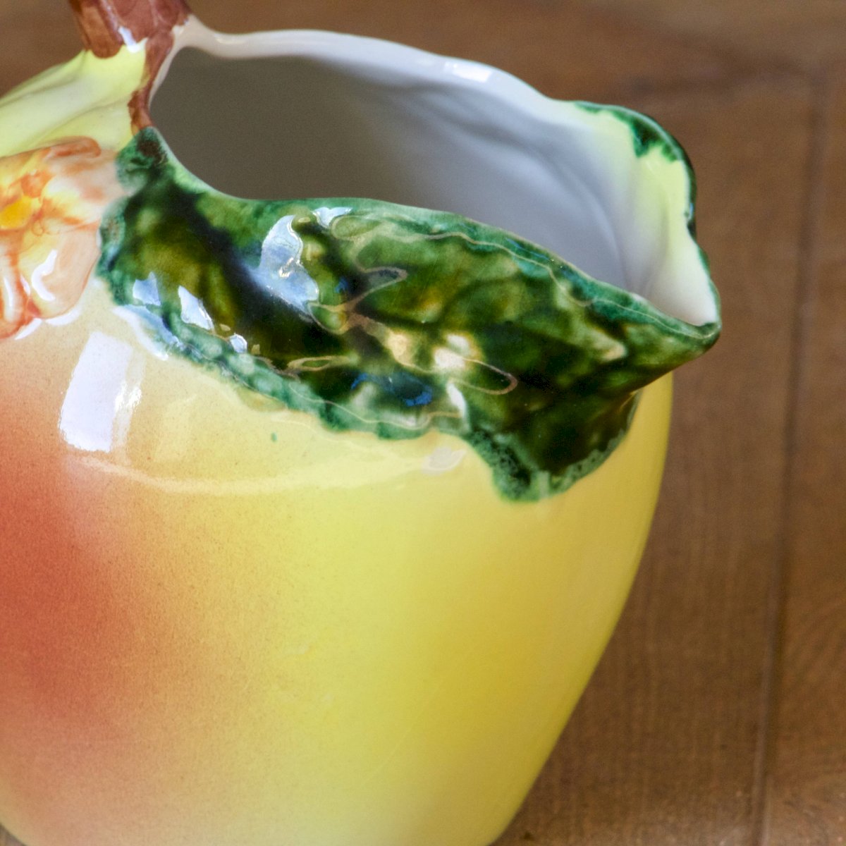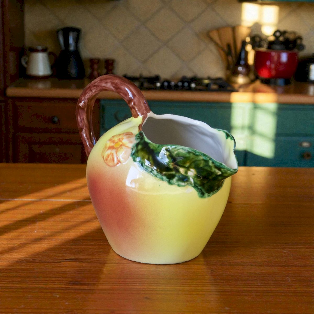 Large earthenware pitcher in the shape of an apple from the brand What's. Beautiful gradient colors ranging from pink/red to soft yellow.