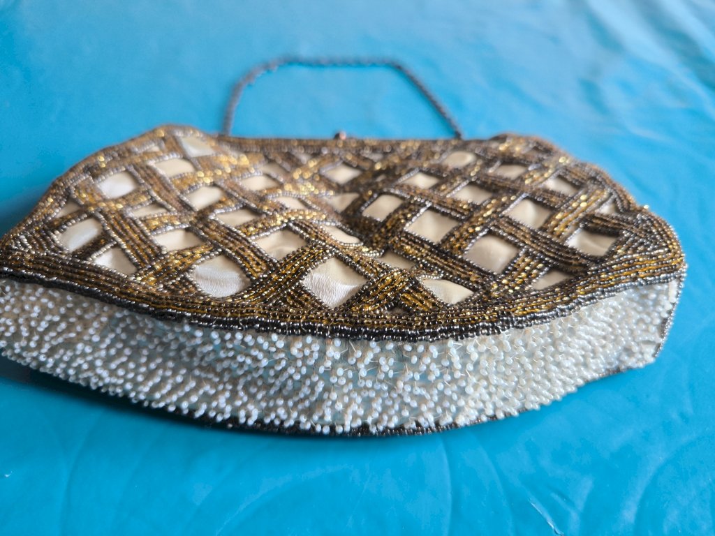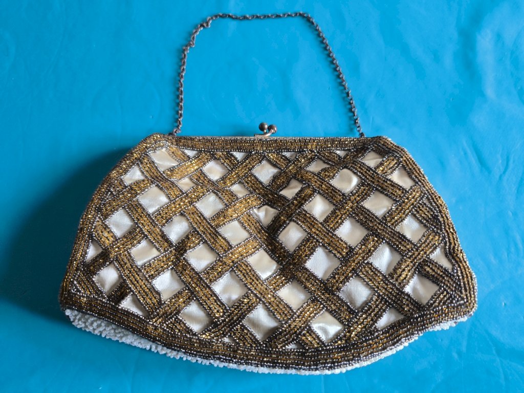 Small gold beaded handbag, vintage from the 1960s.
