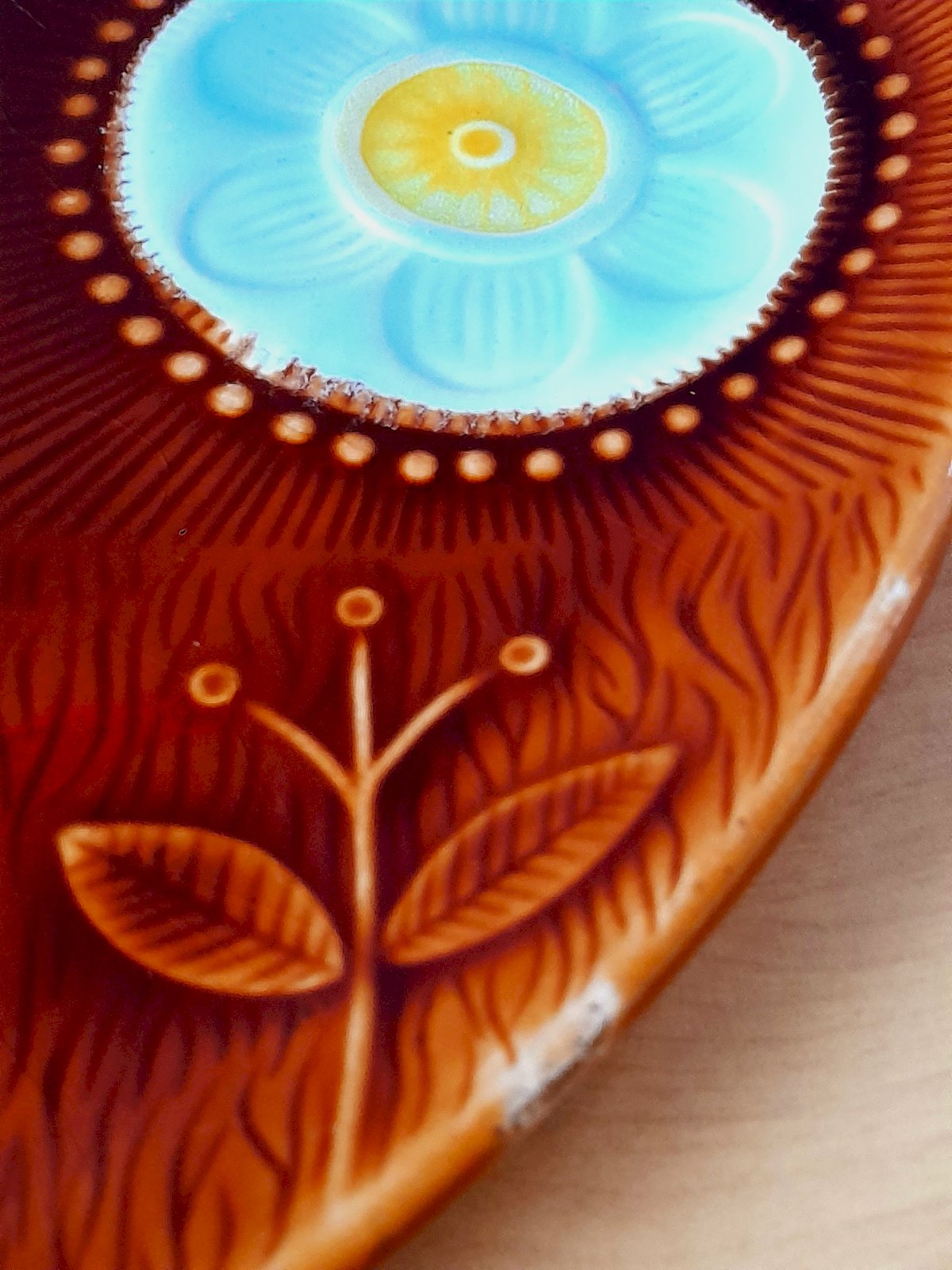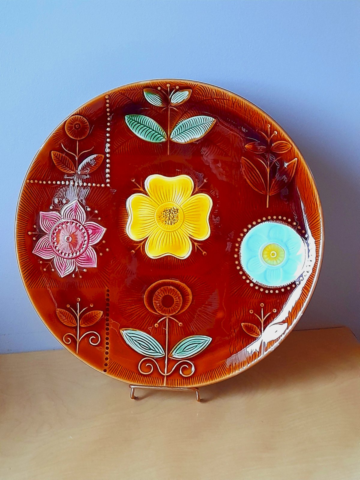 Vintage floral plate from Sarreguemines, from the 1960s/70s. A small defect on the edge (photo).