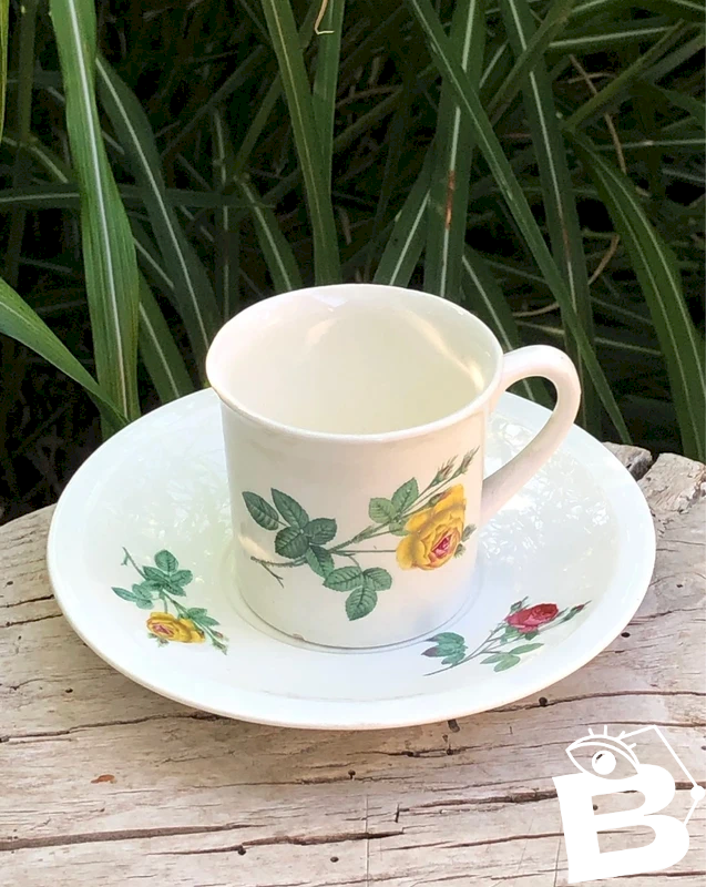 Vintage GIEN cup and saucer with flower patterns in very good condition despite a discreet chip at the base of the cup, see the last photo. Height of cup 6.4 cm, diameter of cup 6.6 cm, diameter of saucer 14.5 cm...