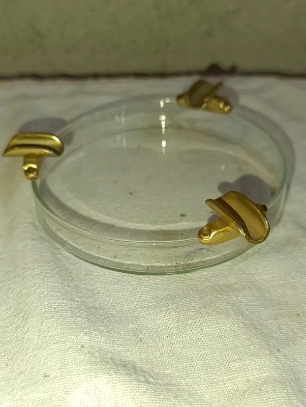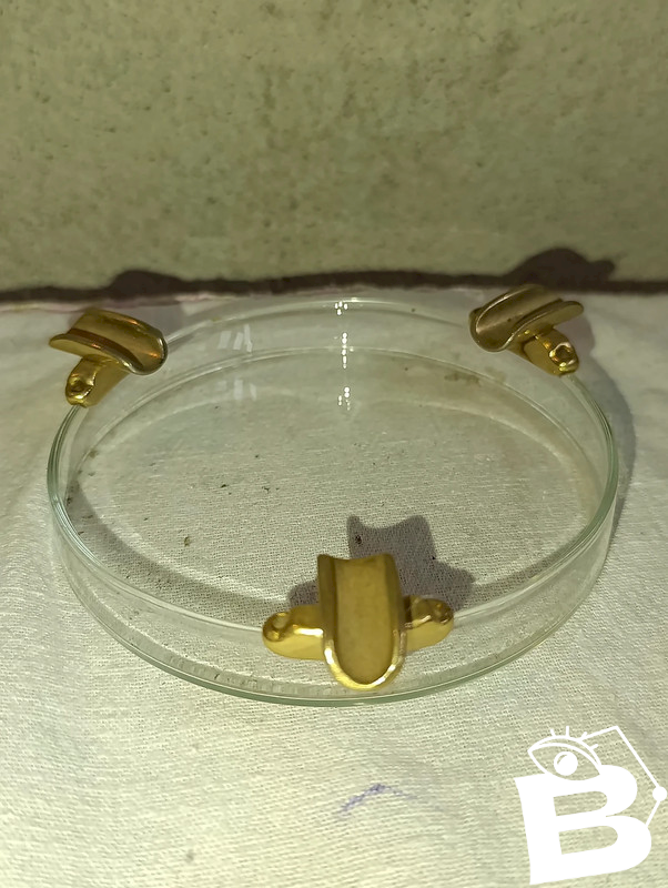 vintage glass ashtray with brass support in good condition diameter 10cm normal signs of wear...