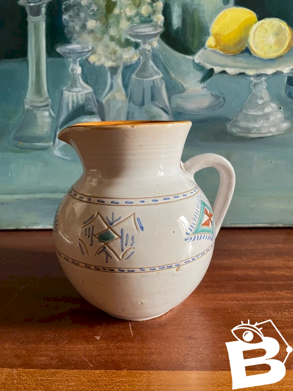 Signed pitcher in glazed ceramic, hand-painted and signed. Very good condition. 1.25 liters. Height 17cm.