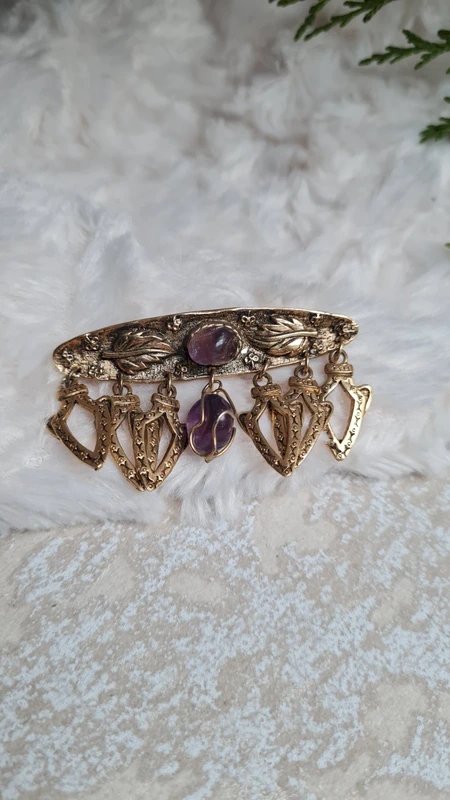 Take advantage of buying in bulk: - 5 items - 10% - 10 items - 20% - 20 items - 30% Be sure to look at the photos to see the imperfections. Dimensions: Width: 5.8 cm Height: 3.4 cm #vintagebrooch #gift #chic #collection #vintage #jewel #brooch #amethysts #amethystbrooch...