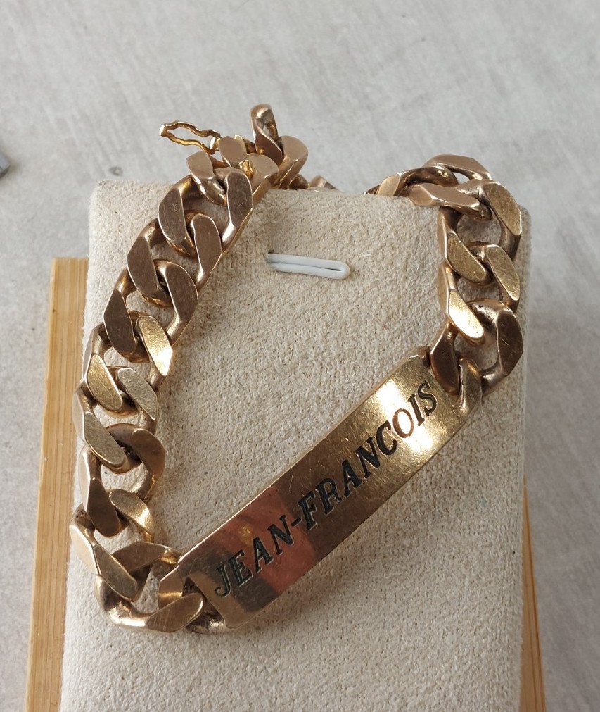 Vintage gold-plated bracelet by Jean François, in good condition, unmarked, width 1.1 cm, total length 21.3 cm, see photos. Check my other items! Reduced shipping costs for combined purchases. Condition: Used item that has been worn. Possible imperfections.