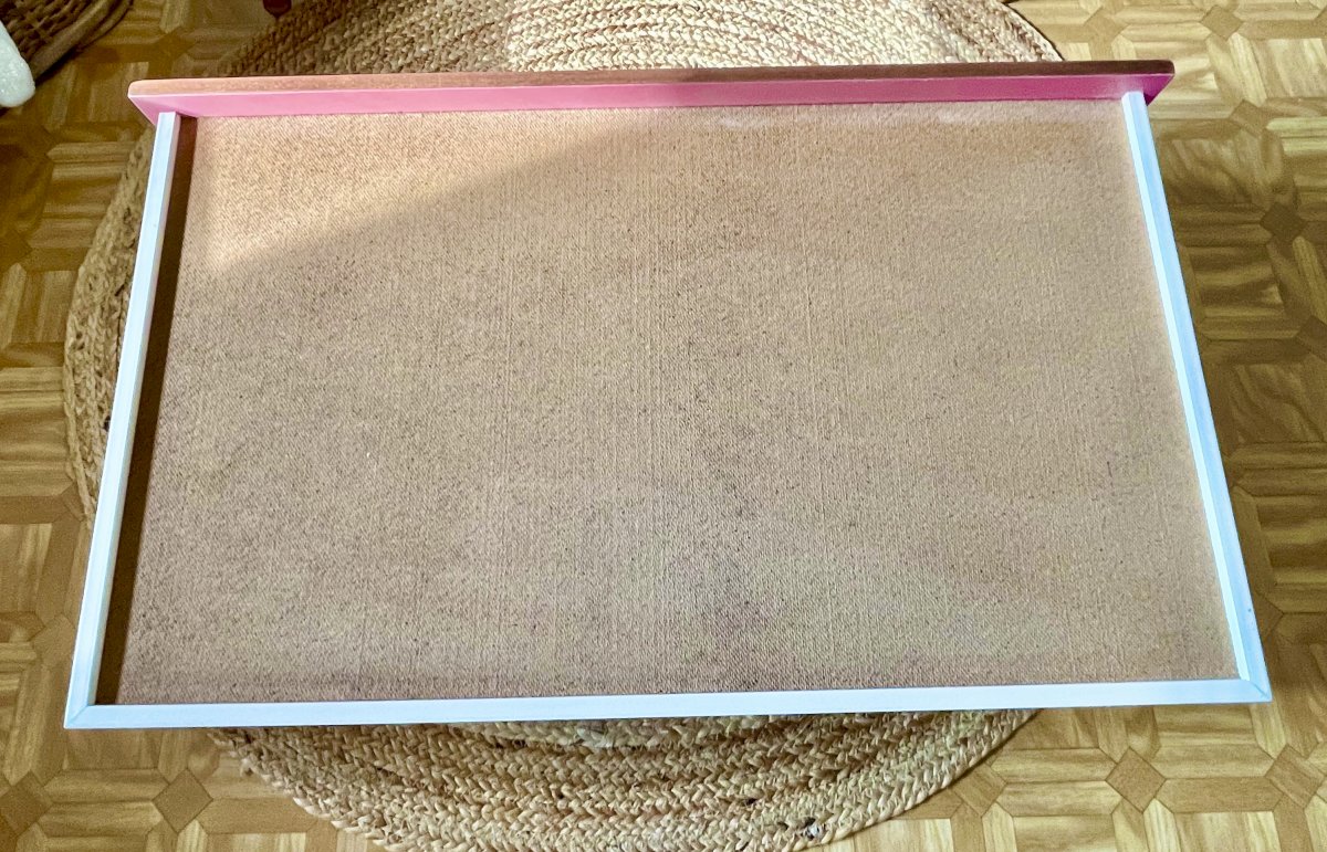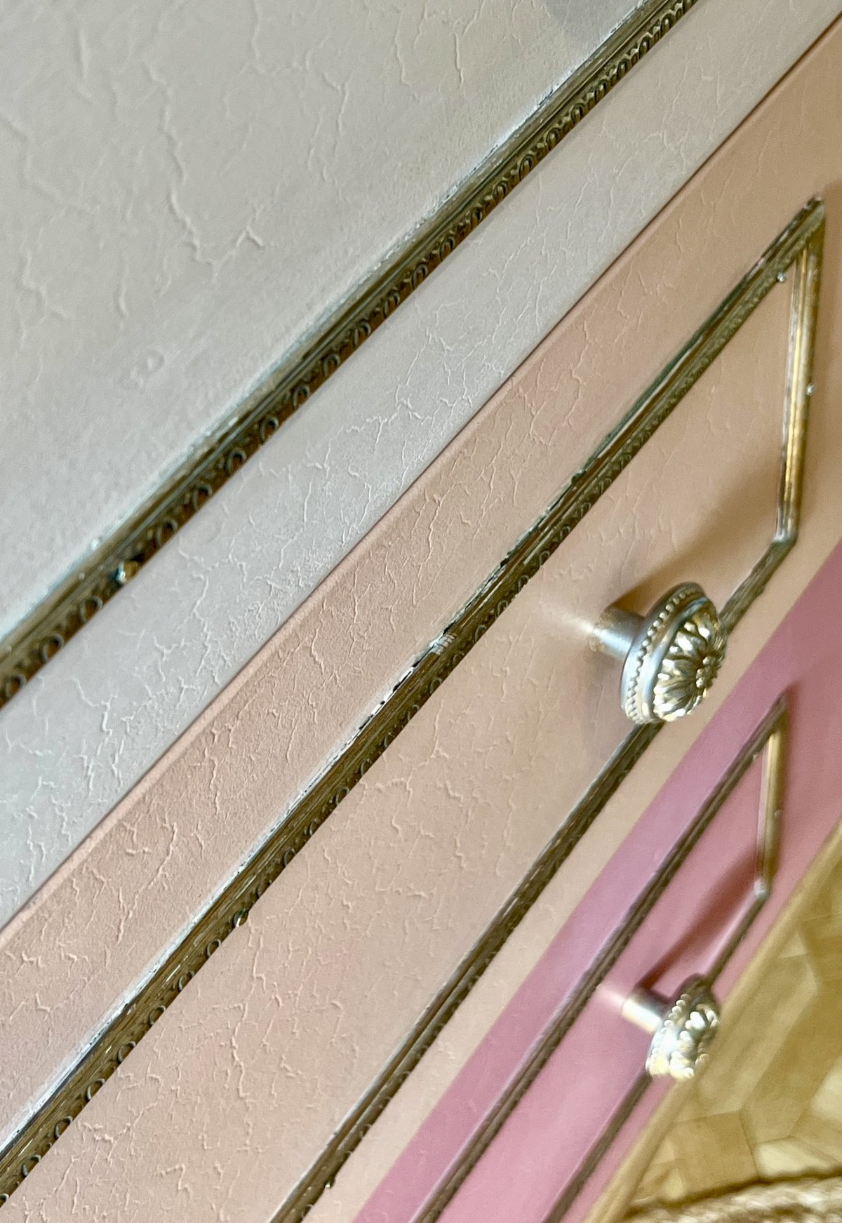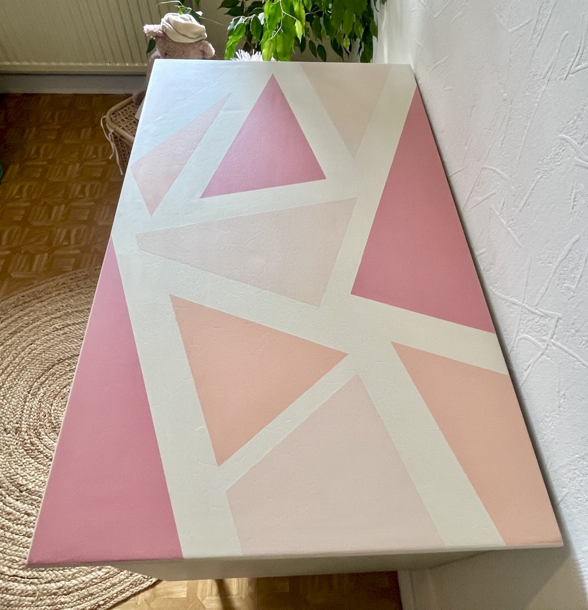 Add a colorful and bright touch to your room with this renovated chest of drawers in a gradient of pinks and cream.
