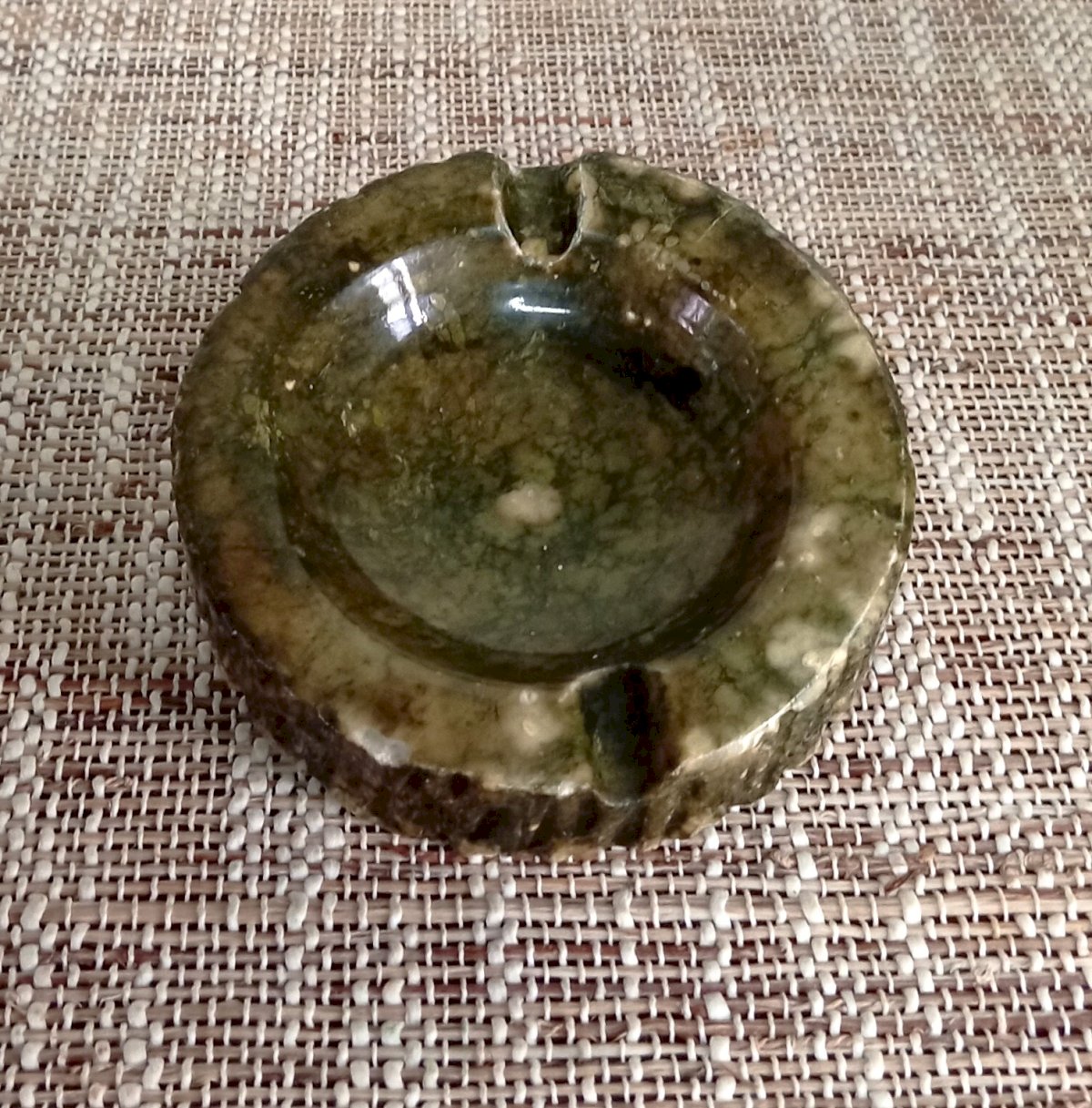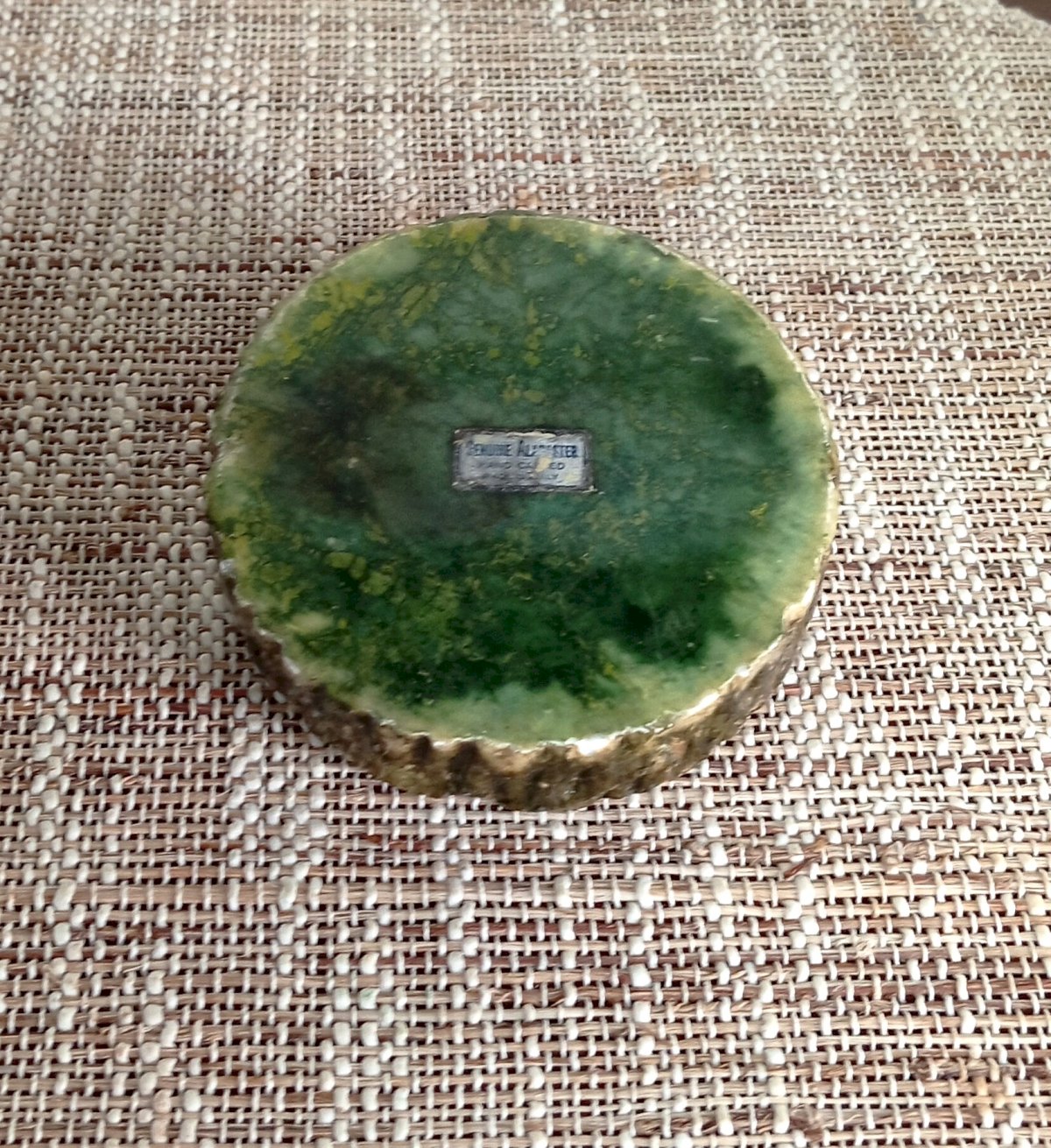 Green alabaster ashtray. Authentic piece of Genuine Alabaster, carved from natural Italian stone. The alabaster reveals natural color variations, ranging from soft green to deep green.