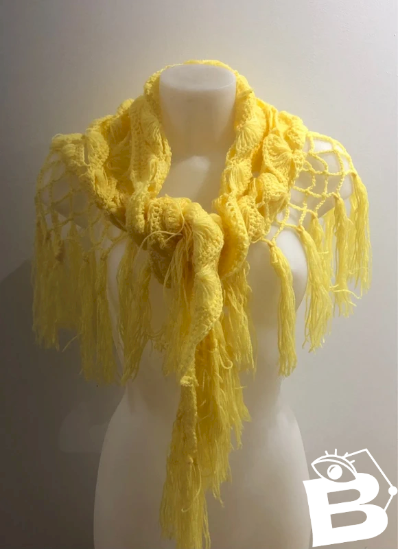 Yellow vintage handmade wool shawl in very good condition. Wool may exceed as shown in the photo but is not fragile.