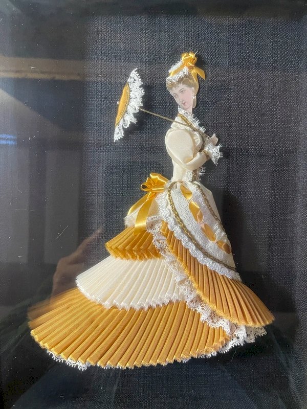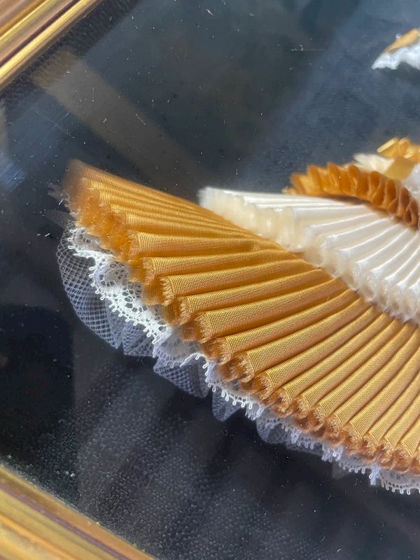 Framed illustrated vintage relief in golden tones. Very good condition except for a small缺少at the top of the frame (hardly visible). Height 30cm, width 23cm, depth 5.5cm.