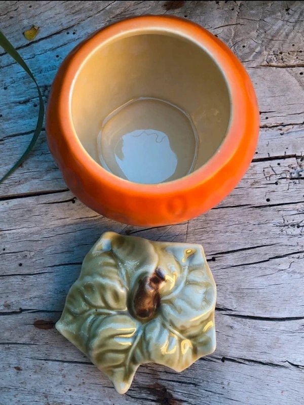 Vintage jam jar in majolica Orange/Green