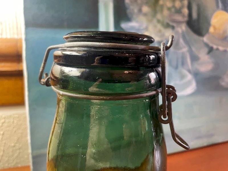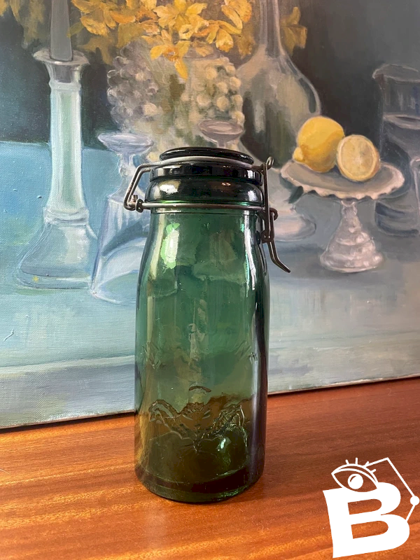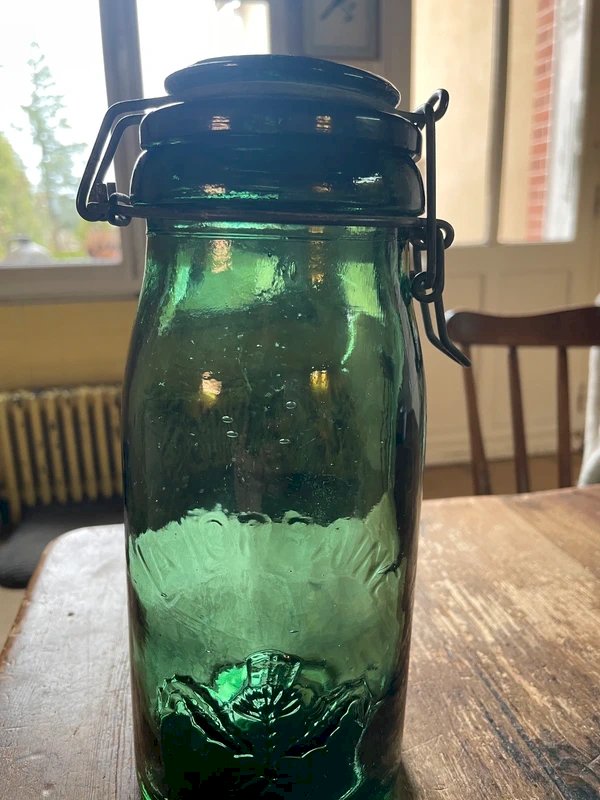 Vintage jar La Lorraine 1 liter bubbled glass Green