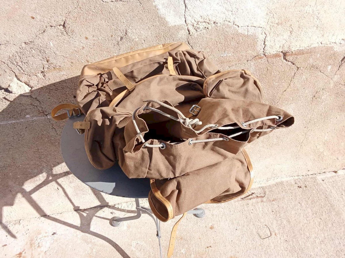 Vintage "Lafuma" backpack from the 1950s/60s, signed Lafuma. Made of thick canvas and
