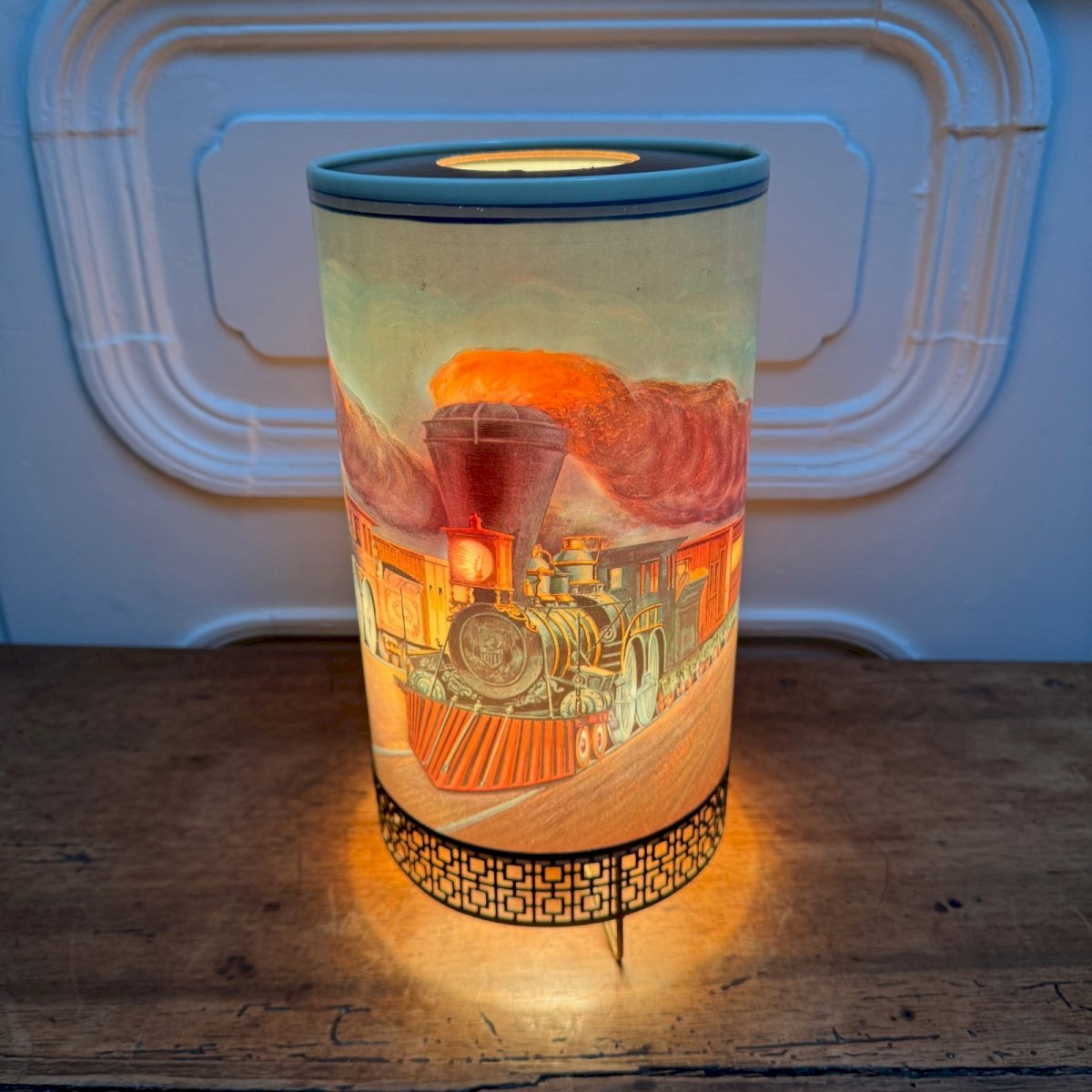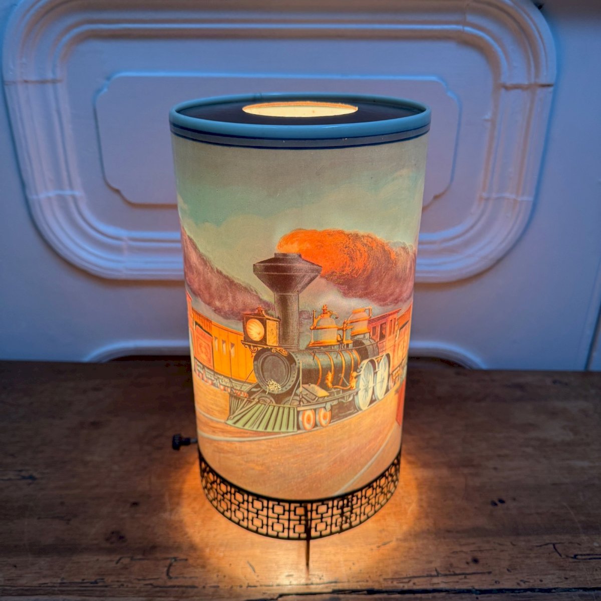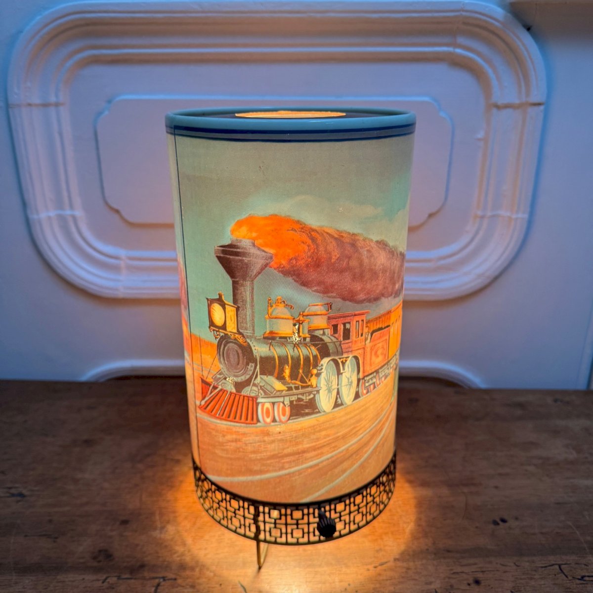 Vintage lamp circa 1960 Goodman mfg.co steaming locomotive decor M3938 This lamp has a metal base, and the structure is made of plastic. It has its original wiring, so it needs to be checked for safety reasons. In terms of condition, there are minor signs of wear on the gilding. Our photos allow you to appreciate the quality of the item. Please pay attention to the details in the photos. Do not hesitate to zoom in. The photos are an integral part of the description. Dimensions: Height: 29 cm Width: 17 cm Diameter: 15 cm S: UU67QQ13 A: 5L0J37BJK7 P: 1676363 I remain at your disposal for any questions. Type: Table lamp Subtype: Indoor Height: 29 cm Length: cm Width: 17 cm Country of origin: United Kingdom