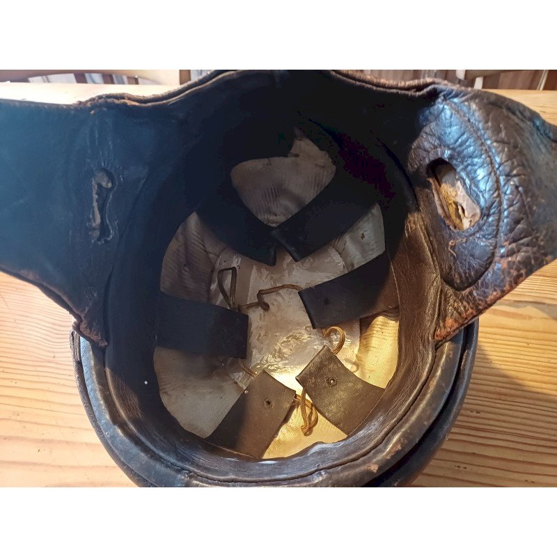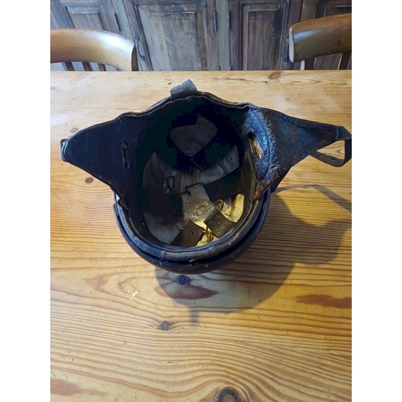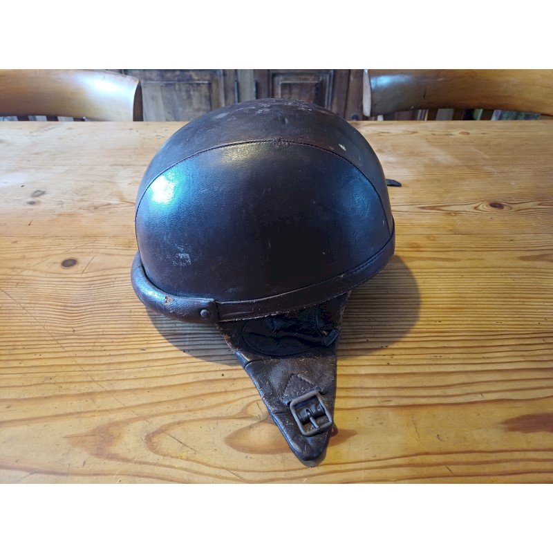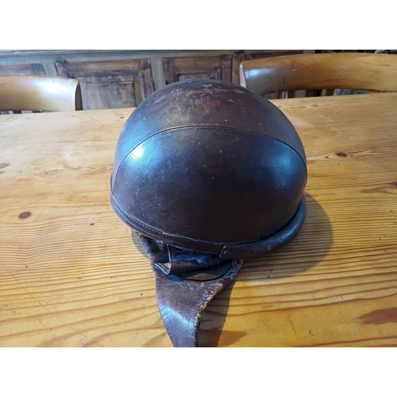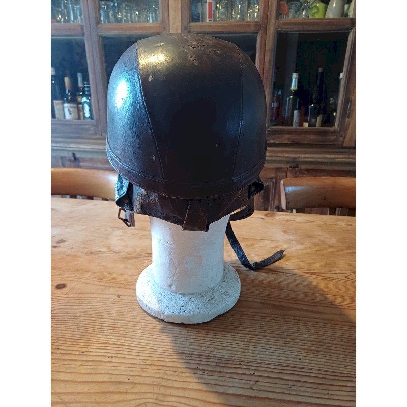 Vintage Leather Motorcycle Helmet, Height: 14 cm, Length and Width: 24.5 cm by 20.5 cm, Interior Dimensions: 16 cm by 19 cm, Weight: 500 g, very good condition.