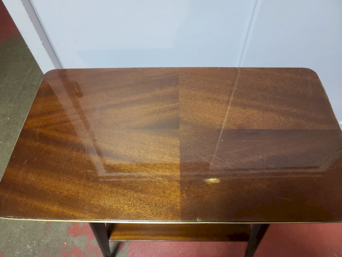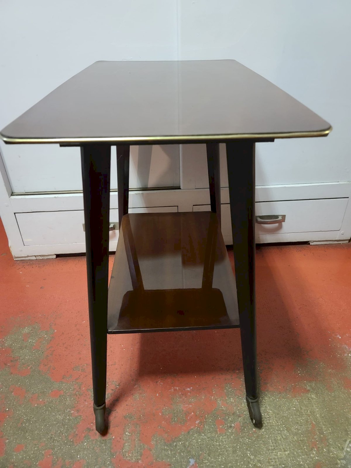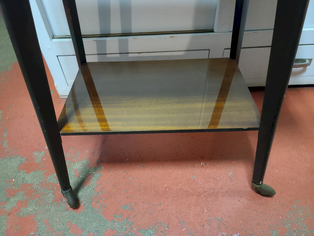 1950s rolling serving cart with double trays, used at the time for placing a transistor or a TV