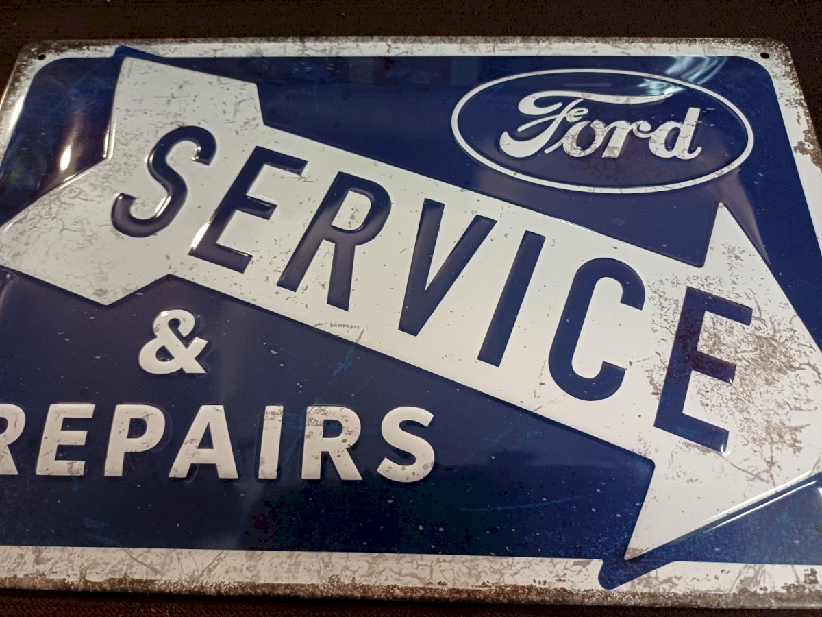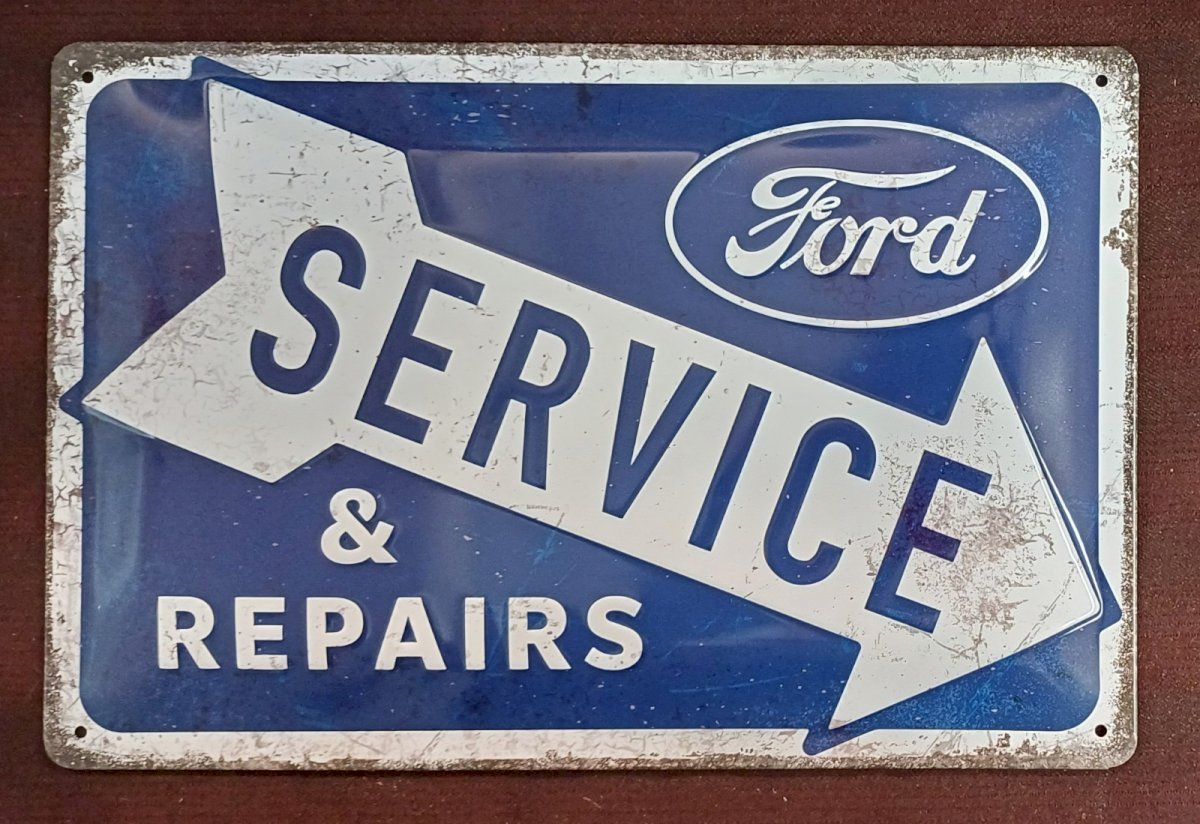 FORD SERVICE & REPAIRS reproduction of vintage advertisement Raised metal plaque dimensions 30 x 20 cm NEW ITEM Official Ford license Condition: New: Item new and intact, never used, unopened. Check the seller's listing for ... New: Item new and intact, never used, unopened. Check the seller's listing for more details. Original/reproduction: Reproduction Type: Raised plaque Origin: Europe Period: 2000s and later Country of origin: France Features: Raised motif Theme: Automotive Edition: Reissue Shape: Rectangular Product: ford