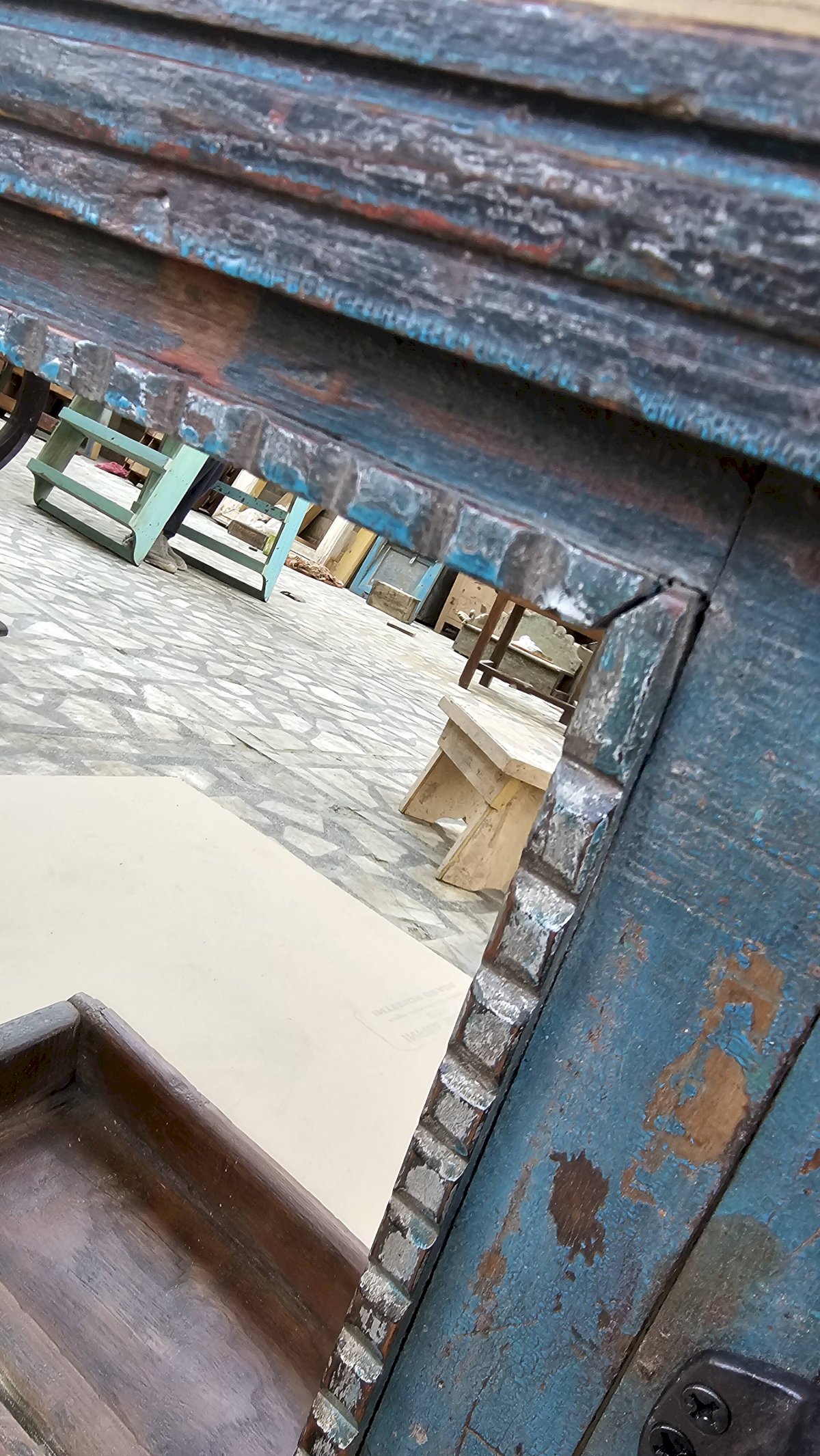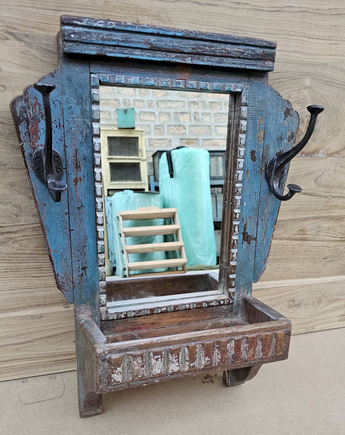 Vintage mirror - Art Deco shelf in Burmese teak Blue Wood
