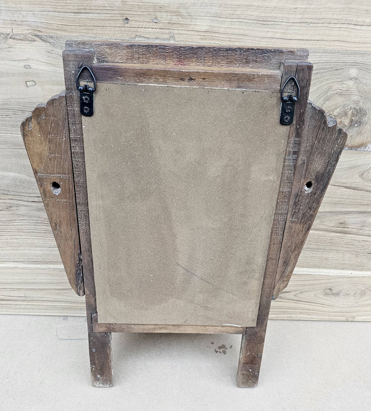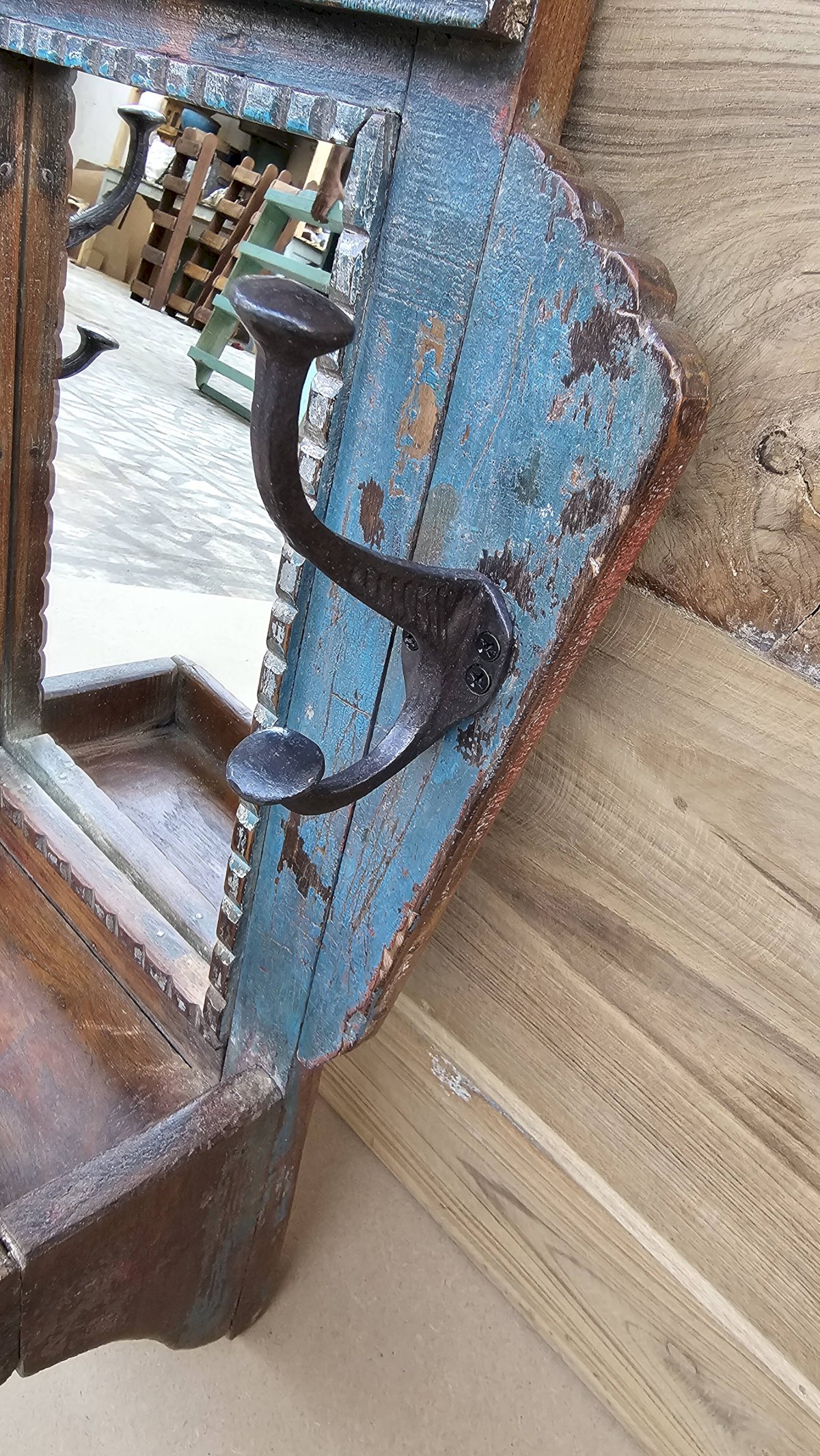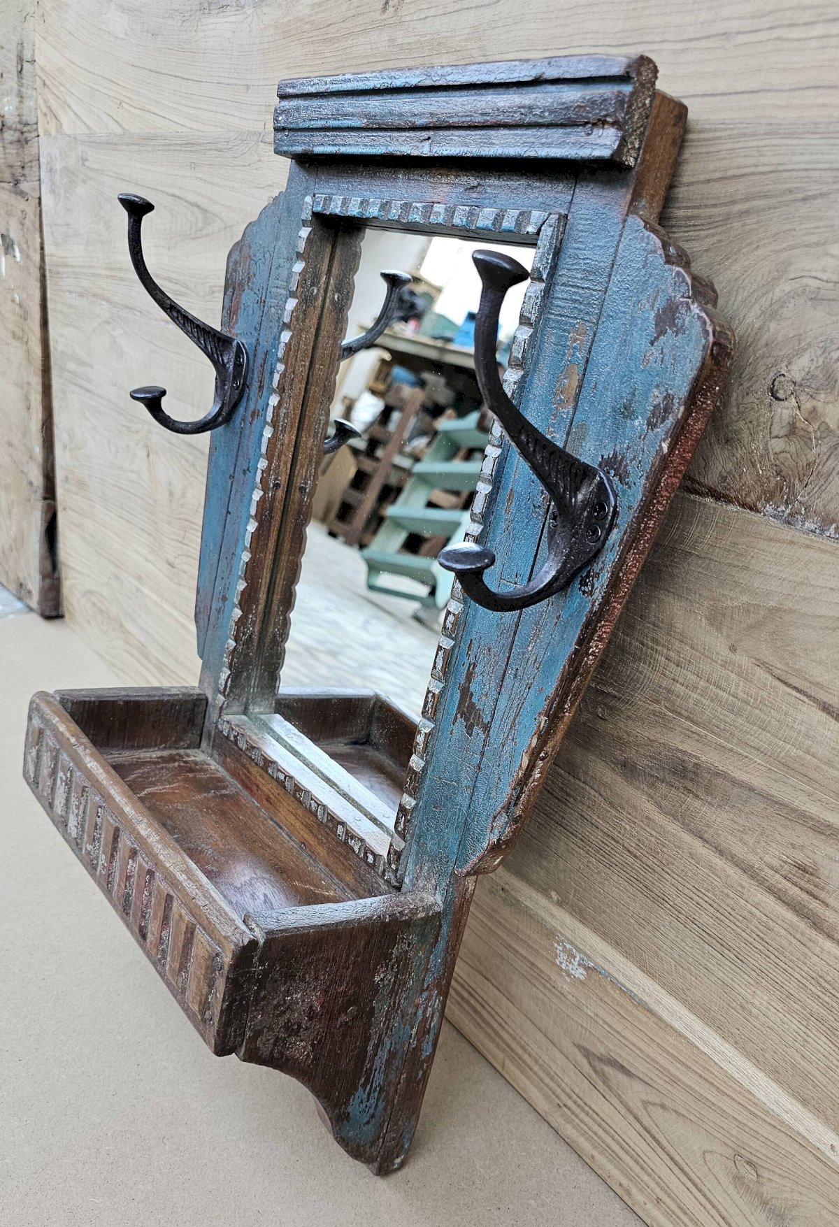Vintage mirror - Art Deco shelf made of Burmese teak / 39 x 13 x 52 cm - 5 kg - wall hooks on the back
