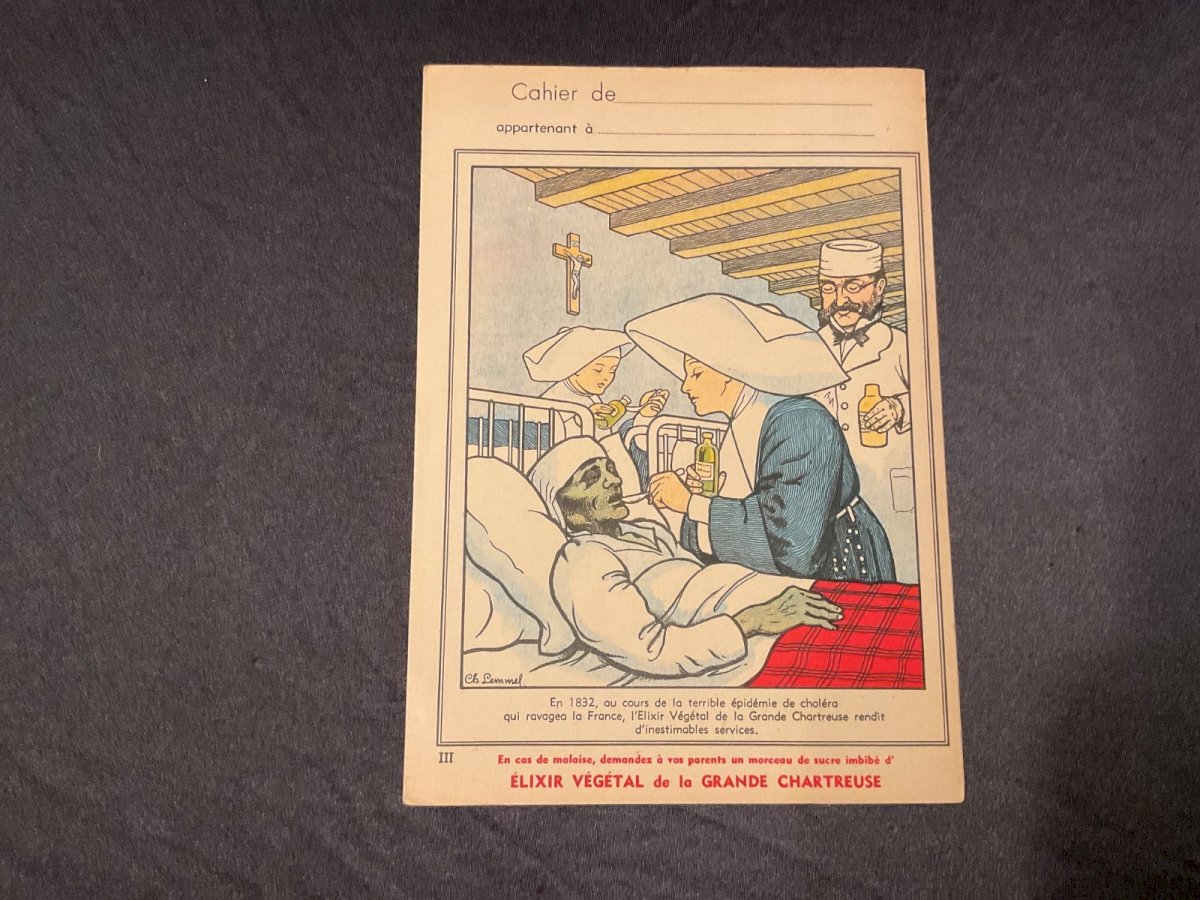 Vintage notebook cover ad ÉLIXIR VÉGÉTAL Chartreuse Condition: Used item. Please check the seller's description for more details... Used item. Any possible imperfections. Era: 1910s Original/reproduction: Original Country of manufacture: France Theme: Alcoholic beverage