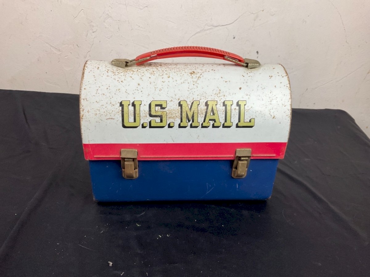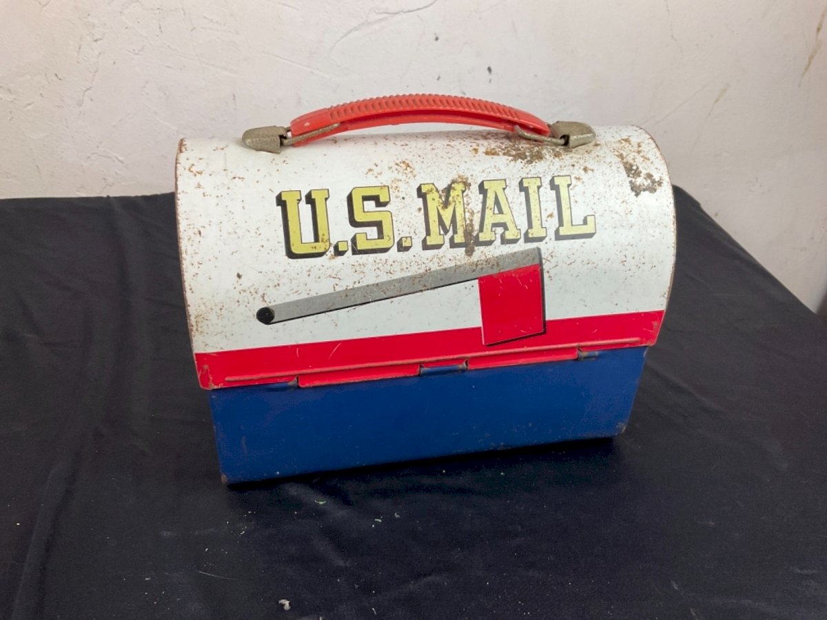 Vintage Old US Mail Lunch Box Metal Dome 1969 Aladdin Height: 17 cm Length: 22.8 cm Condition: Used: Item has been used. Please check the seller's description for more details... Condition: Item has been used. any imperfections. Era: 1960s Original/reproduction: Original Country of manufacture: United States Material: Metal
