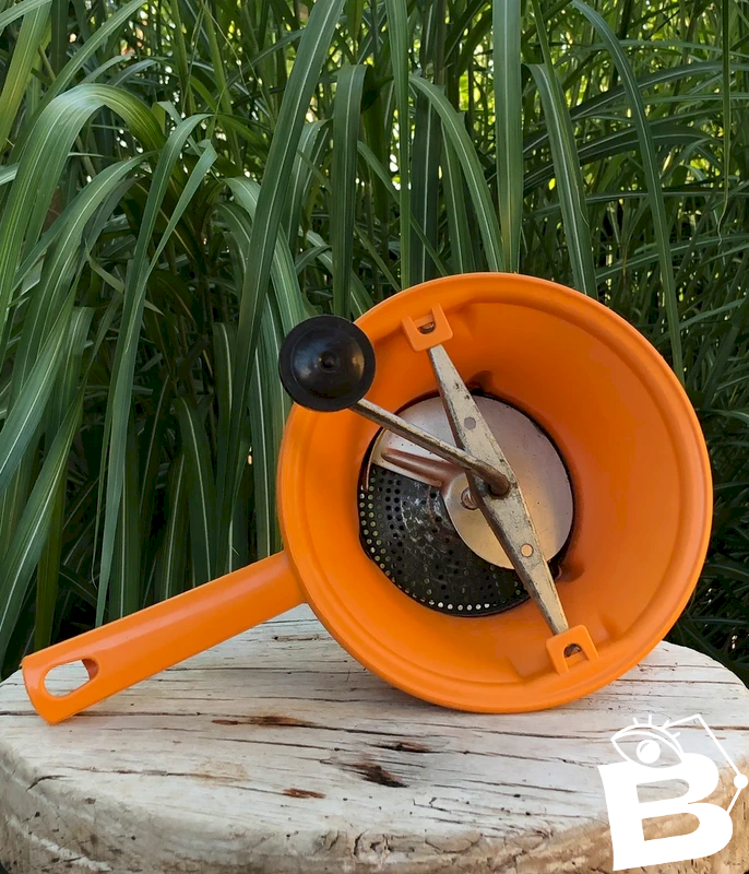 Vintage orange vegetable mill N°1 made in France registered design Good condition, see photos