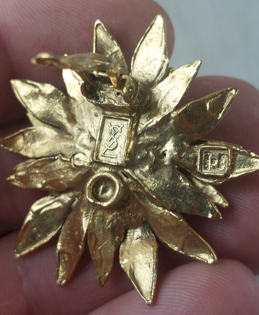 Vintage orphaned clip earring, Yves Saint Laurent, the clip holds well, missing on the pearlescent paint signed Yves Saint Laurent, dimensions 4.5 cm x 4.5 cm, see photos. Check out my other items! Shipping discount for bulk purchases. Condition: Used item that has been worn, any imperfections. Brand: Yves Saint Laurent. Dominant color: Gold. Closure: Clips.