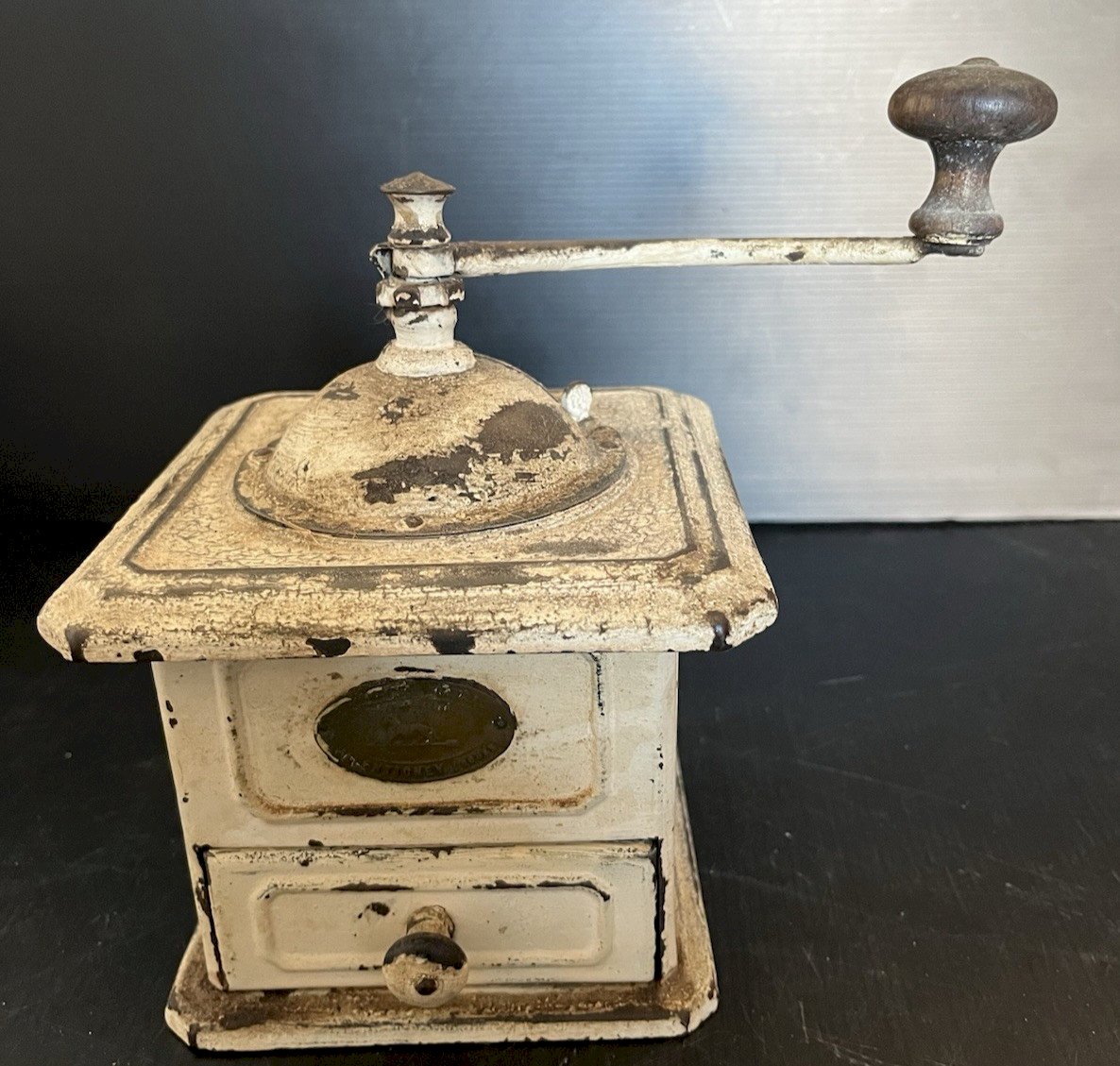 Vintage coffee mill by Peugeot (metal plaque present) made of painted tin, with a beautiful patina of time. Dimensions: 15 x 15 x 11 cm, weight: 1 kg. Please look at the photos above, which also serve as the description. Careful and secure packaging via Mondial Relay or by postal service, to be chosen at the time of your purchase. Thank you all and happy hunting in my shop. Returns accepted within 14 days from receipt, return in original packaging, in its initial condition; no refunds for items returned broken or lost by the carrier, return shipping costs are the buyer's responsibility. Don't hesitate to add my shop to your favorites! Condition: Used item. See seller's description for more details ... Used item. Any imperfections. Color: White Type: Manual coffee mill Subtype: coffee grinder Country of origin: France Material: Enamelled tin.