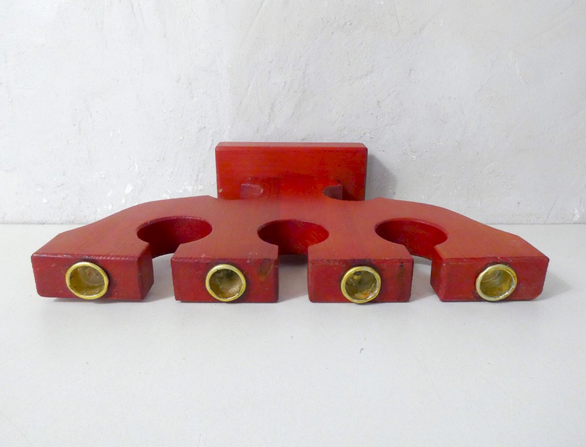 Painted wooden chandelier, signed and dated 1992. In traditional Swedish style. Height: 24 cm. Width: 34 cm. It is in very good condition, with superficial signs of use: wax residues.