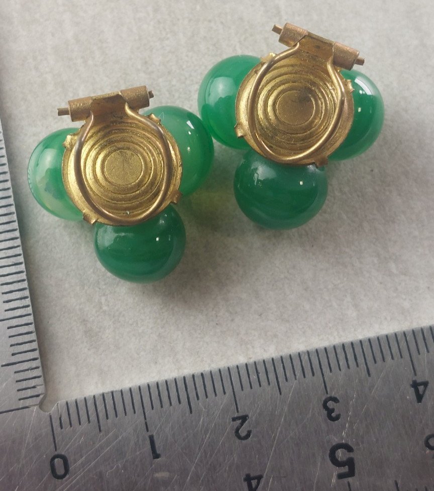 Old pair of clip earrings, green stones, vintage in good condition, the clips hold well, unmarked dimensions 1.9 cm X 2.1 cm see photos. Check out my other items! Discount on shipping for combined purchases. Condition: Used. Item has been worn. Possible imperfections. Dominant color: Green. Clasp: Clips.