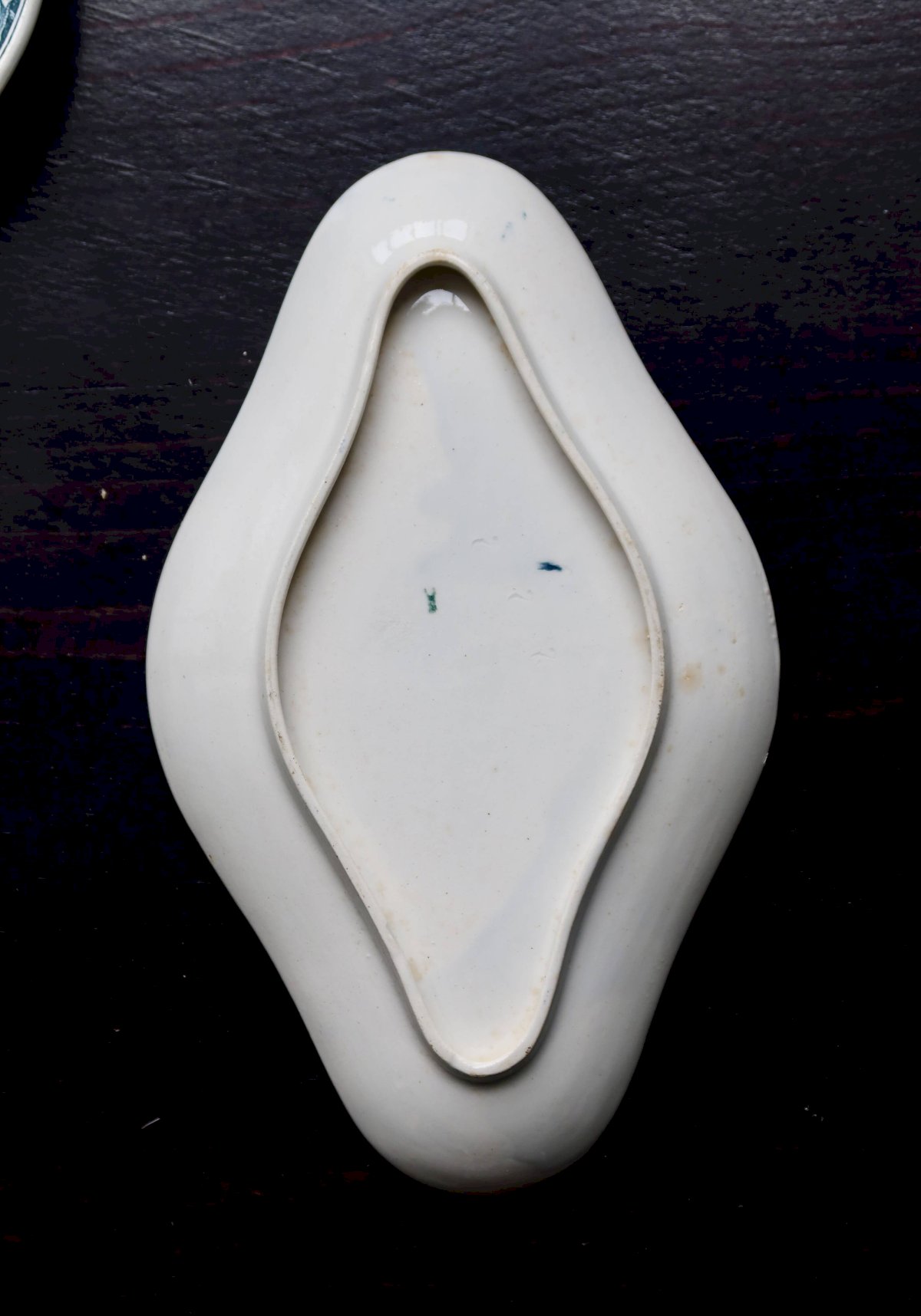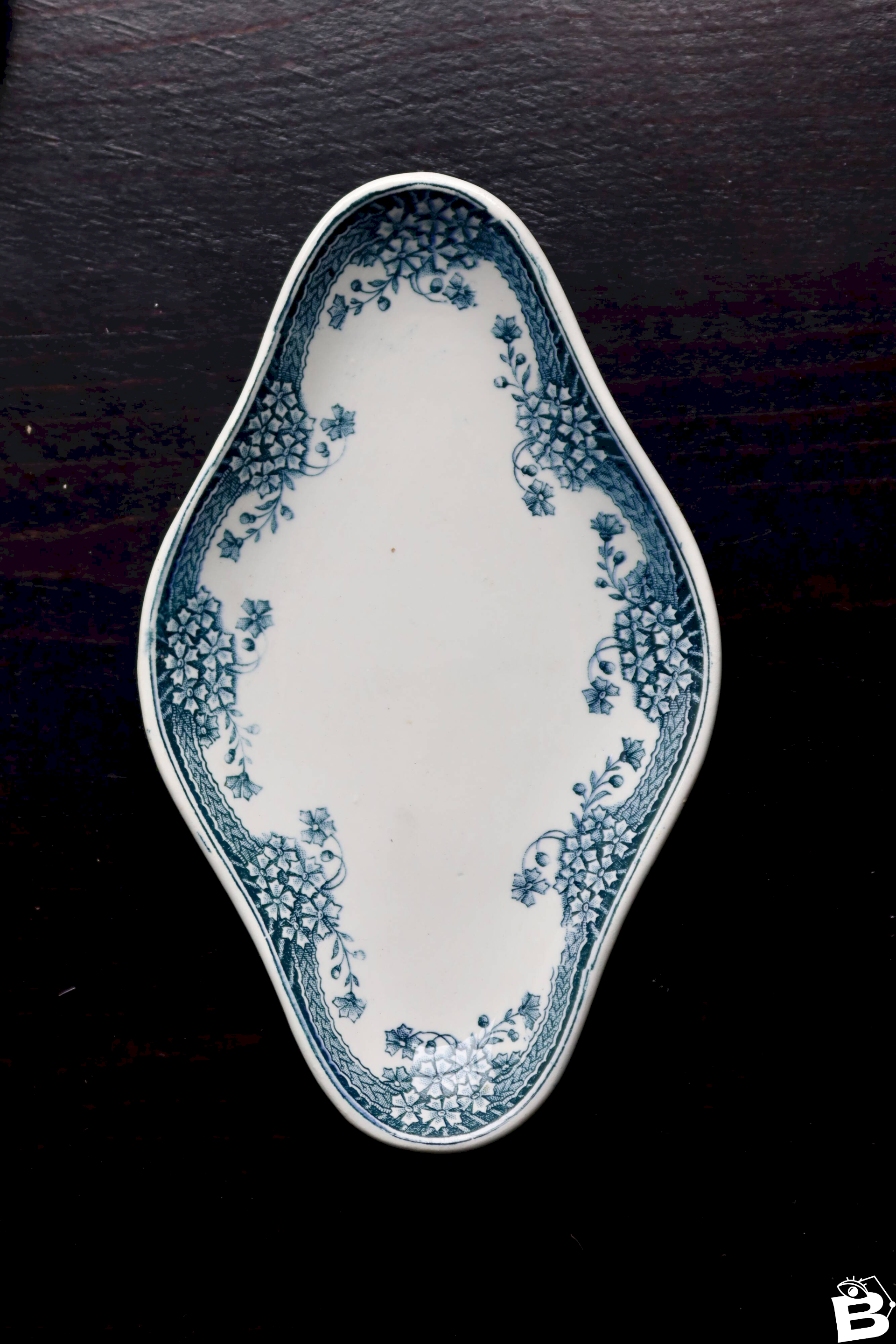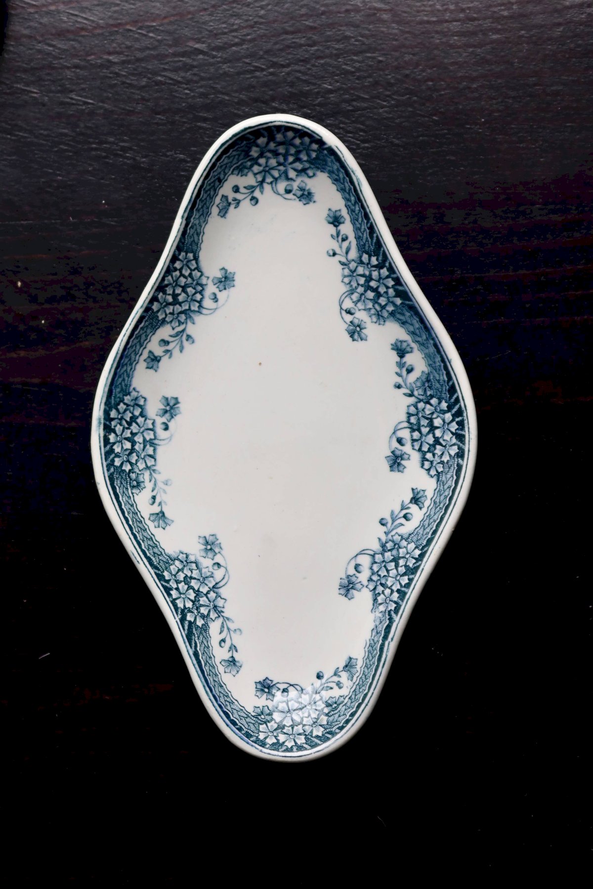 Sinuous shape with a blue-green floral cartridge border, shiny white earthenware with a decoration applied by transfer. 4 units are available for sale, price displayed for one. Please note, variable condition depending on the piece, make sure to check the photos. ? Beautiful vintage condition, micro signs of use, patina. ? Dimensions: 24.5cm X 1cm X 15cm. L: 24 W: 15 H: 1