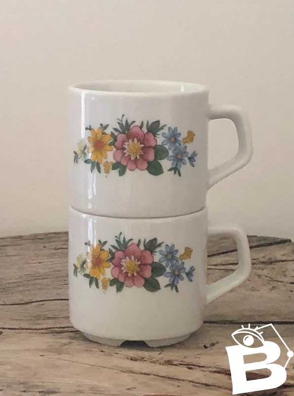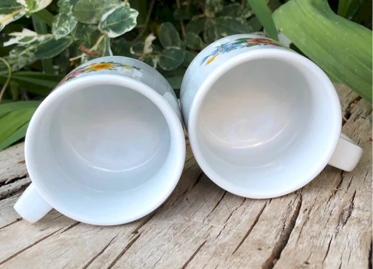 Vintage retro porcelain cups with small flower patterns