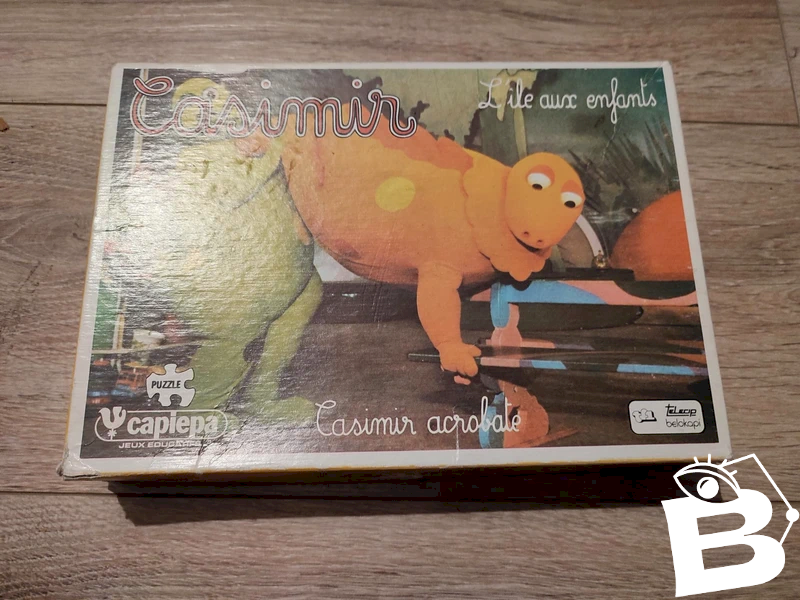 Old 35-piece puzzle Casimir the acrobat in good condition and complete, box damaged.