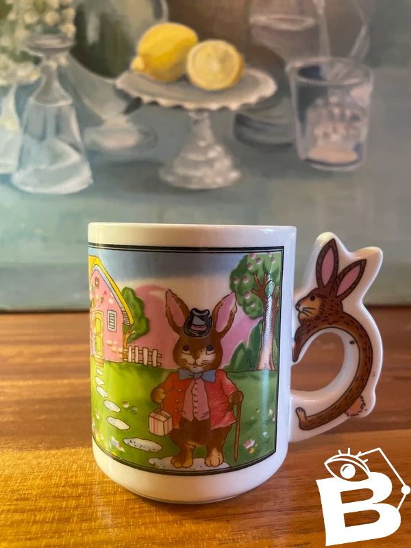 Vintage mug with rabbit design Made of porcelain "made in China" 90s Height 9.5cm, diameter 8cm