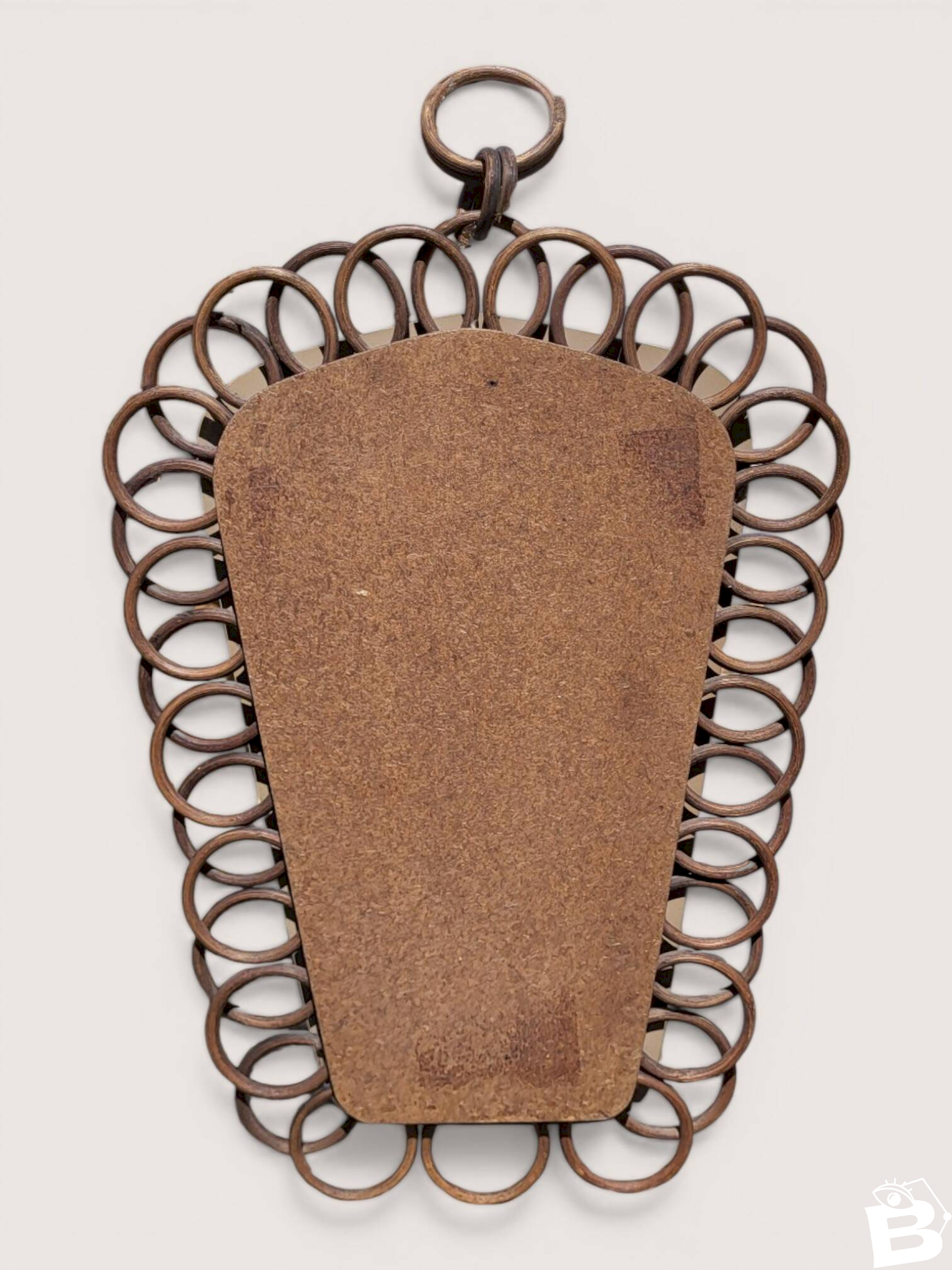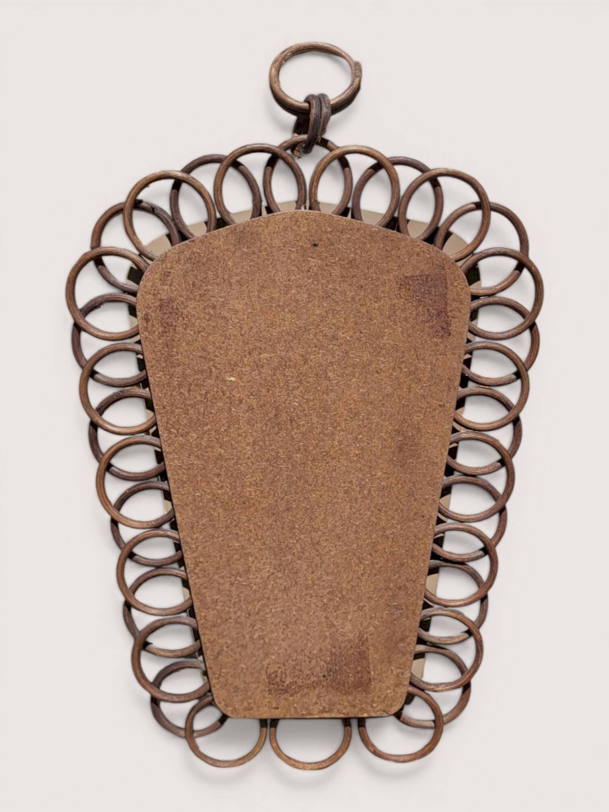 Rattan mirror / Handmade wickerwork. Height 49.5 cm. Maximum width 31 cm. Depth 3.5 cm. L: 31 W: 3 H: 49