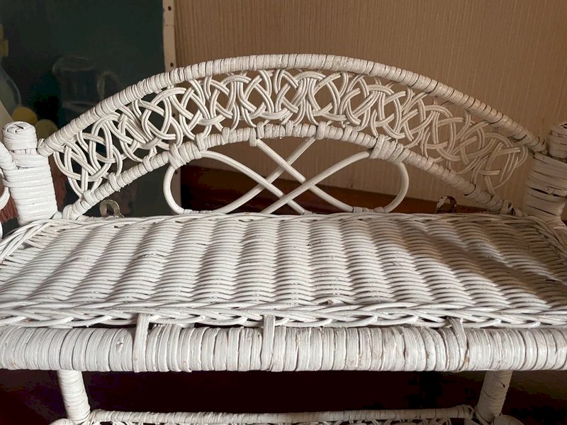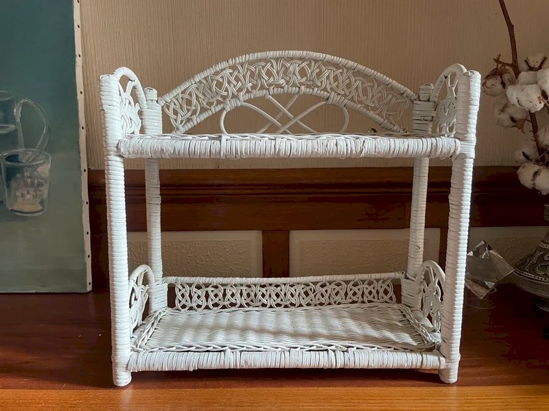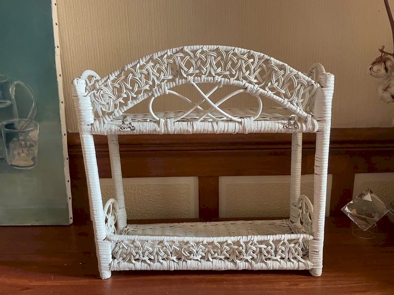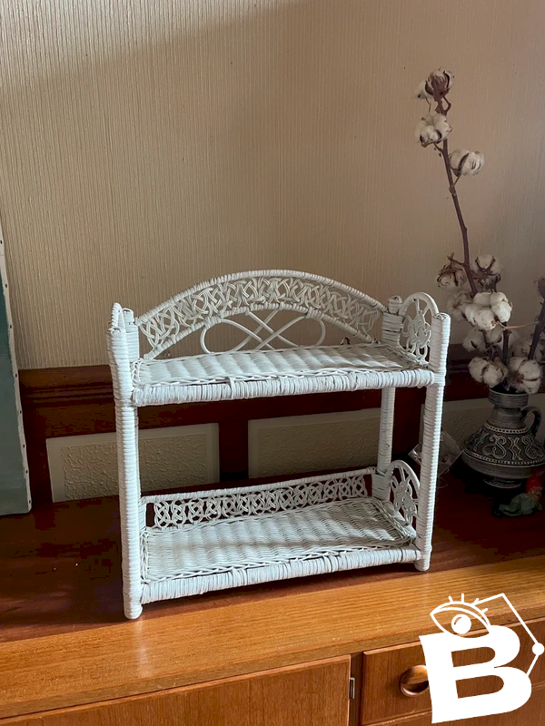 Vintage rattan shelf Very good condition To place or to hang (small iron hooks are at the back) Height 44cm, width 44cm, depth 16.5cm