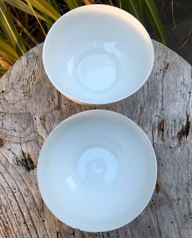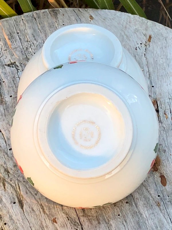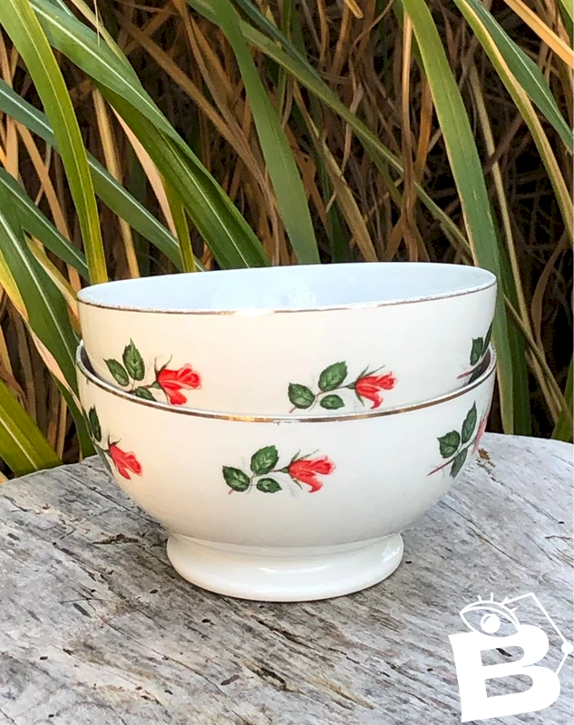 2 vintage retro porcelain bowls with red rose patterns in generally good condition as each has a small chip on the edge, see the last photo. Height 6.5 cm Diameter 11.8 cm.