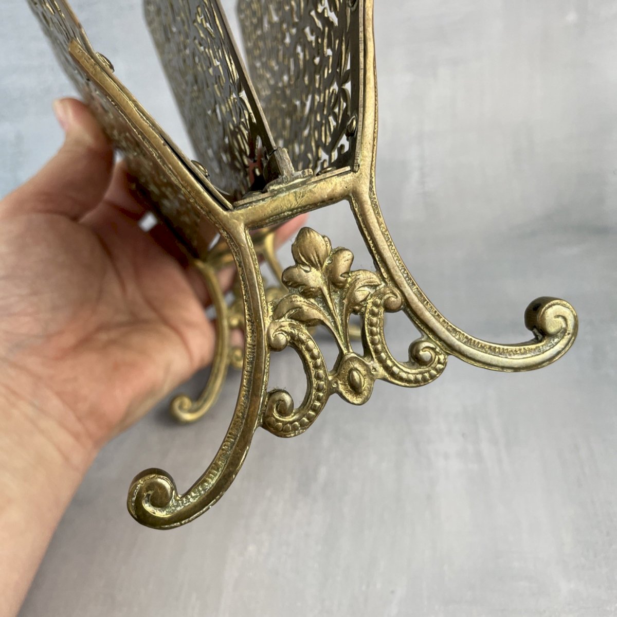 Vintage retro chic patinated openwork brass letter holder / letter rack Height ~ 15.5 cm Dimensions ~ 15 x 7.5 cm Total weight ~ 0.44 kg Very good condition with signs of time and use, uncleaned patinated brass, see photos Remember to group your purchases to reduce shipping costs! Material: Brass