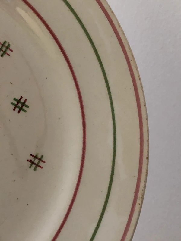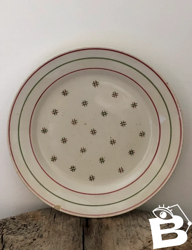 Vintage retro flat plate with its story engraved by a fork, see the photos. Small chip on the edge, see the last photo. Good overall condition. Diameter 22.2 cm.