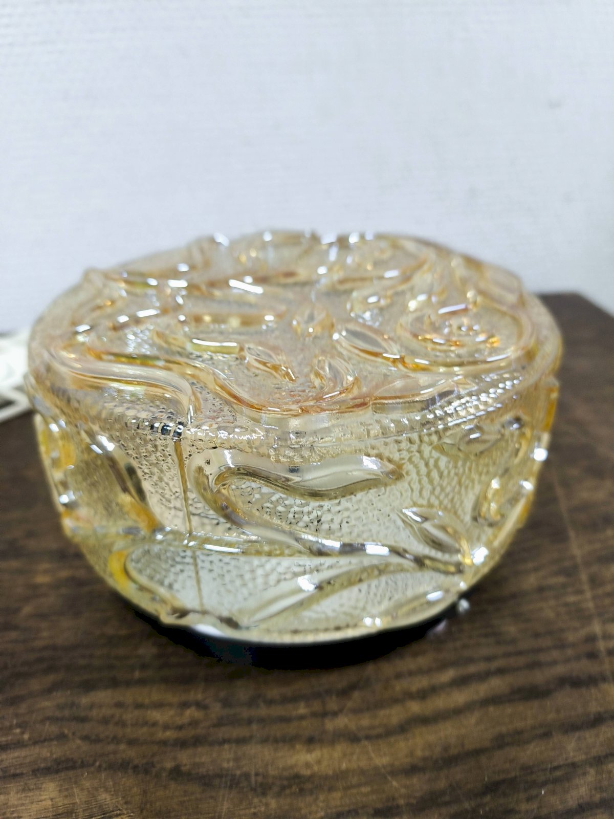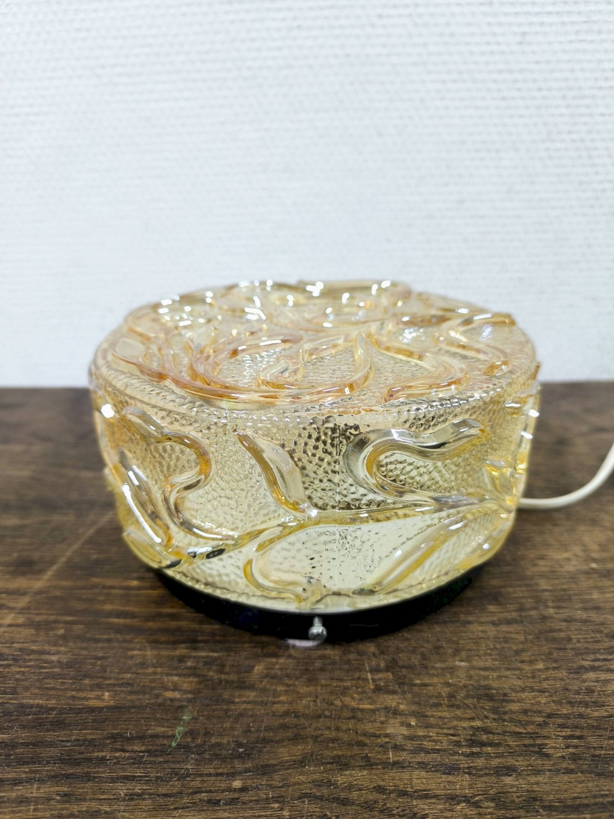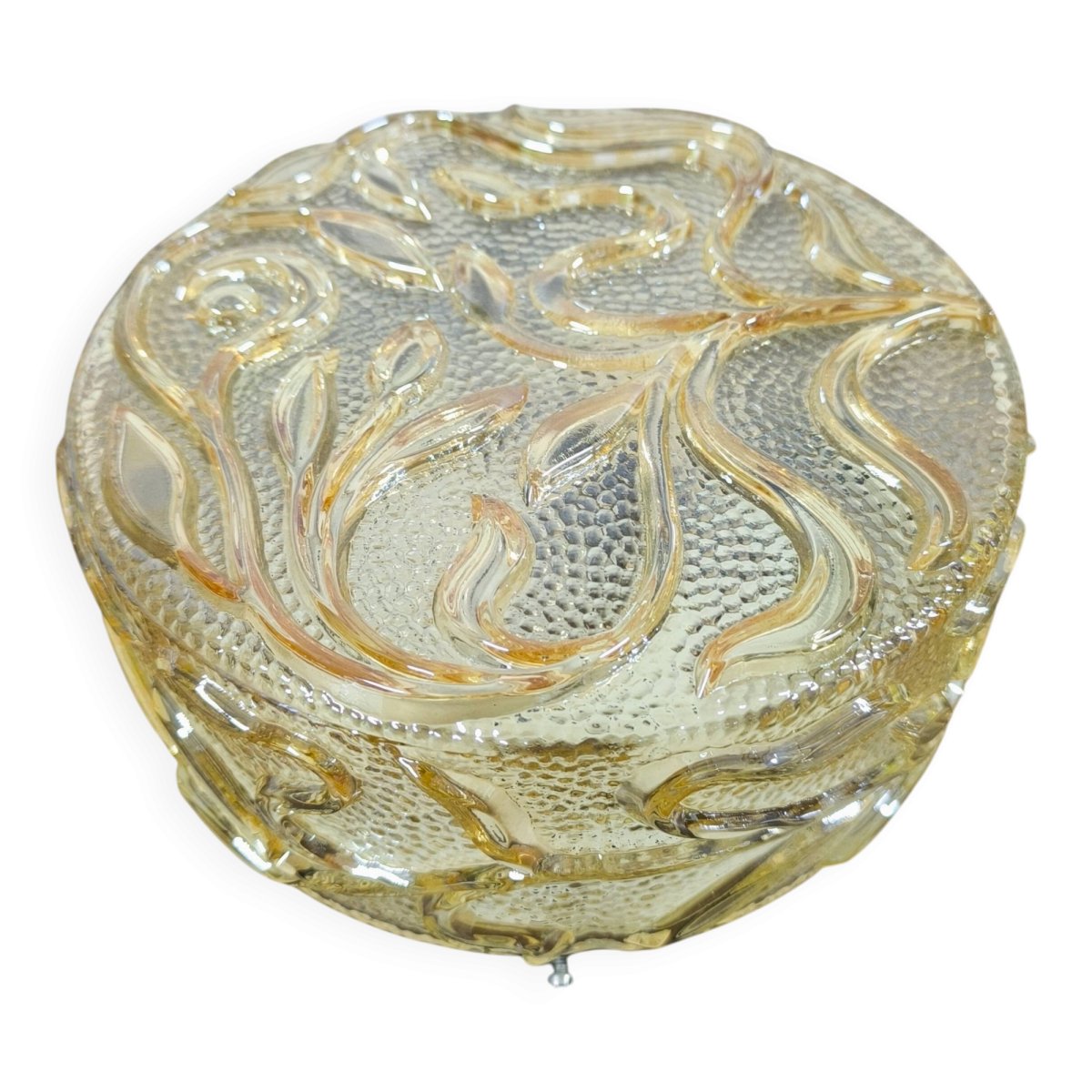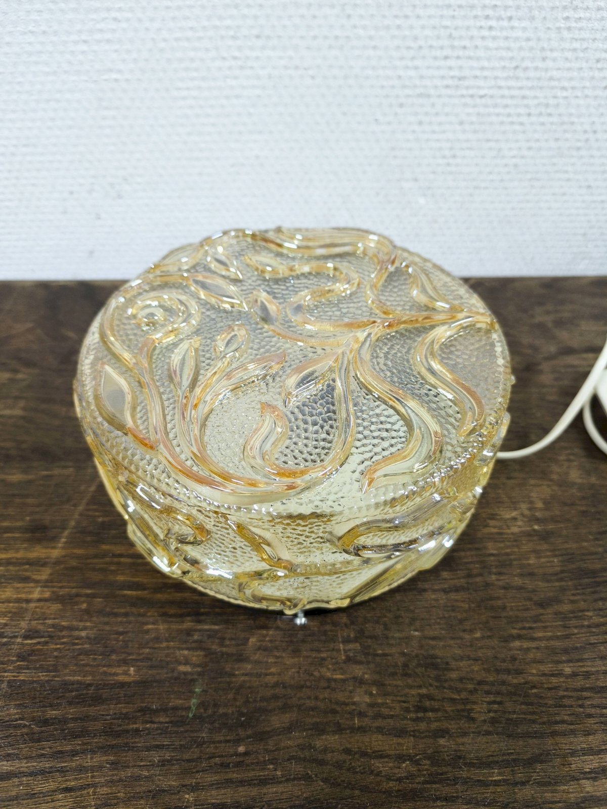 Vintage round amber glass wall lamp, floral decoration
