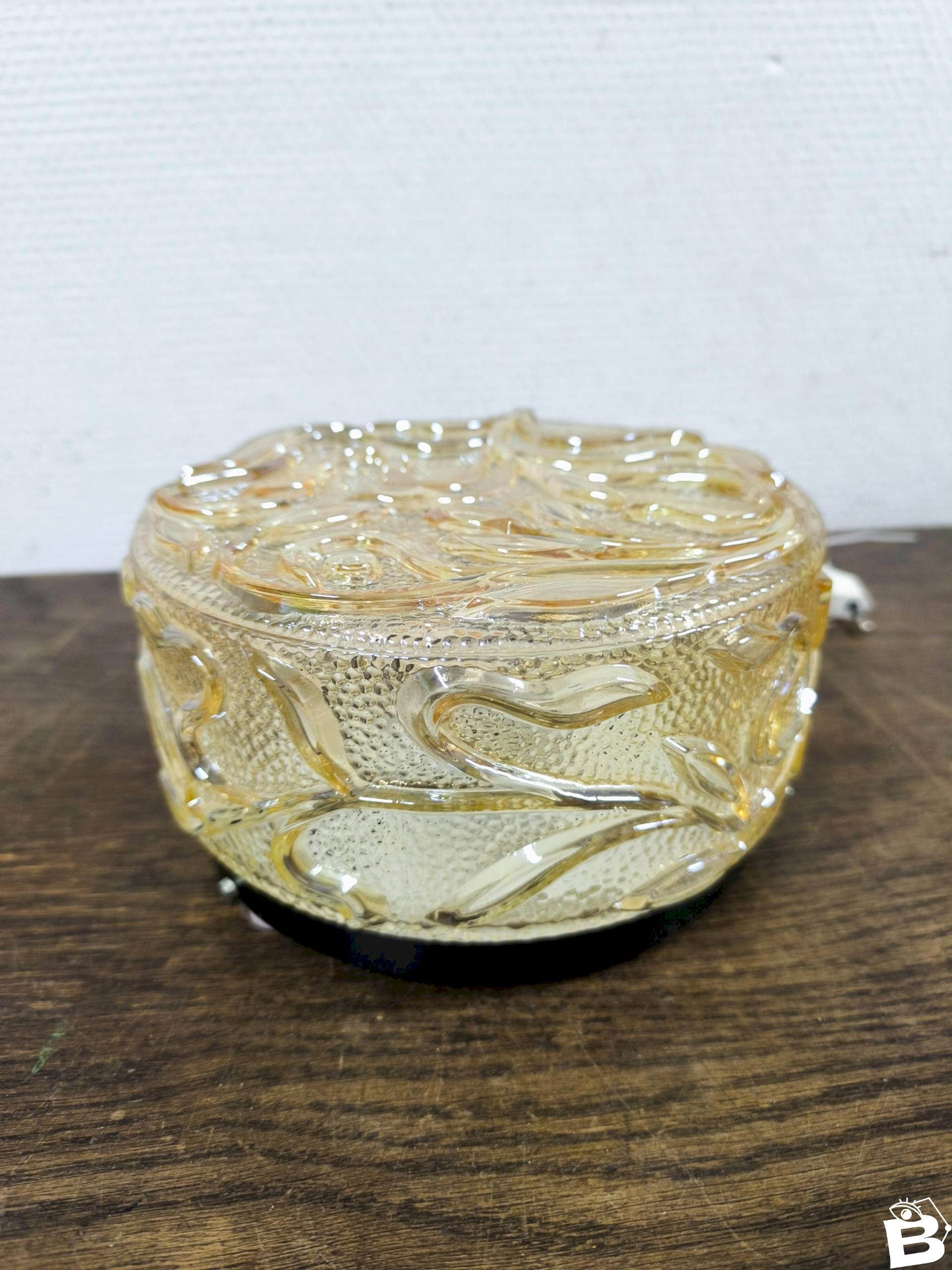 Vintage round amber glass wall lamp, floral decoration Golden