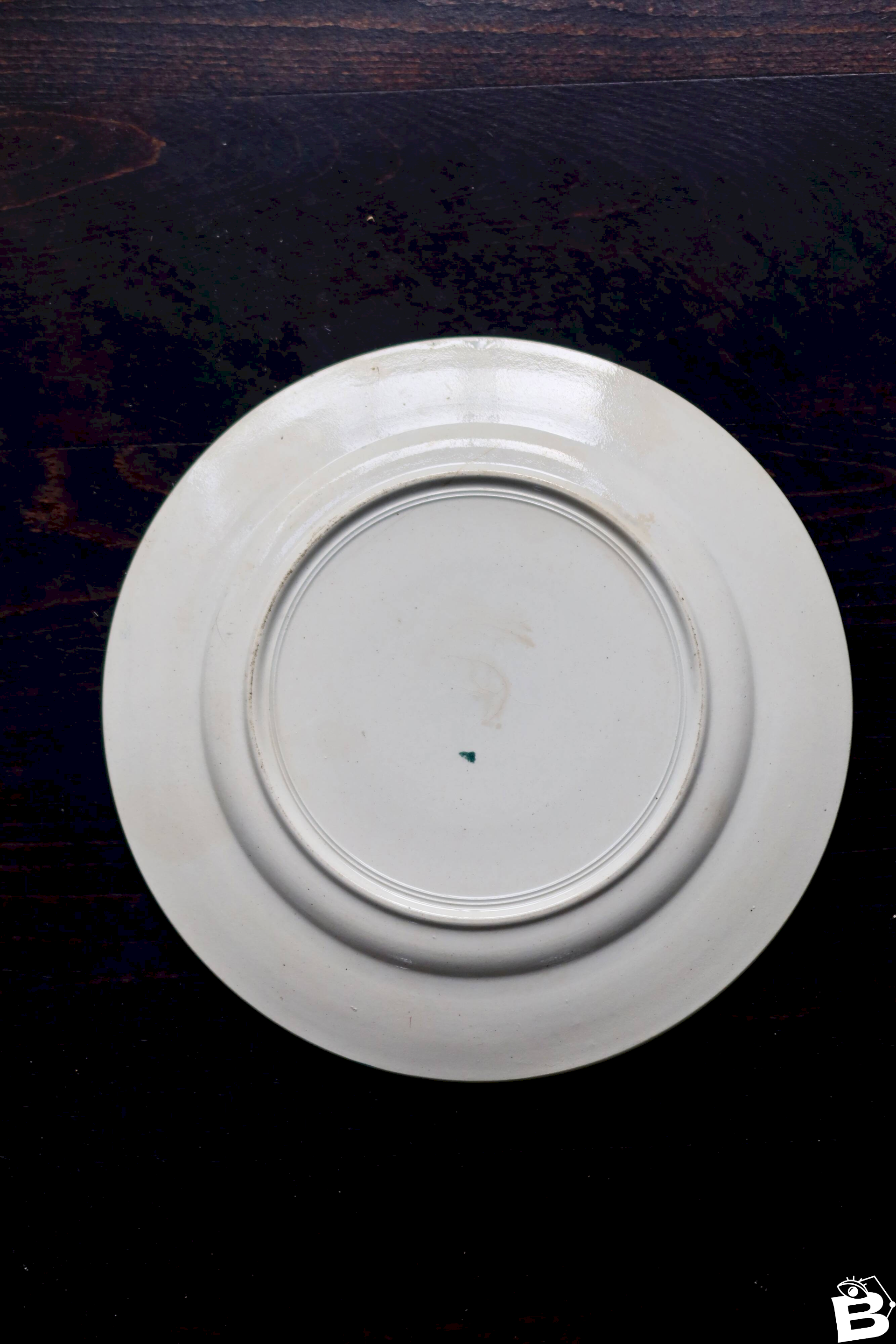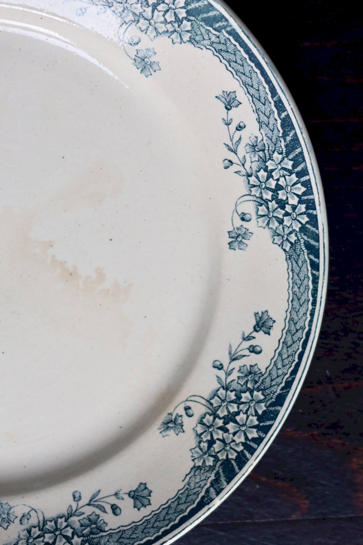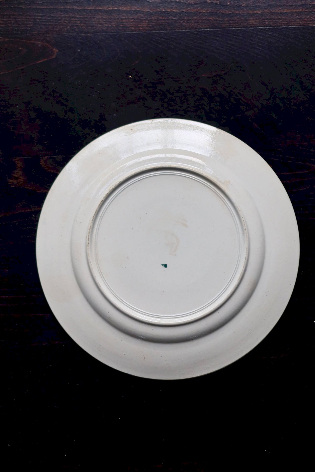 Marli with floral garlands and trellis, antique enamel with a network of cracks and small stencil defects visible in the decoration (nothing structural, overall in good condition).