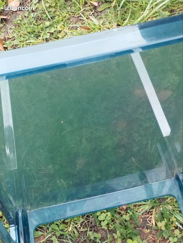 Vintage side table by Marc Berthier for Prisunic – Blue Plexiglas – 1960s Transparent
