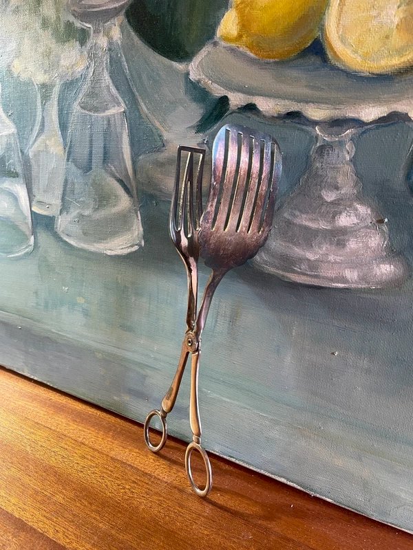 Vintage silver-plated cake tongs Silver/Black Silver/Metal