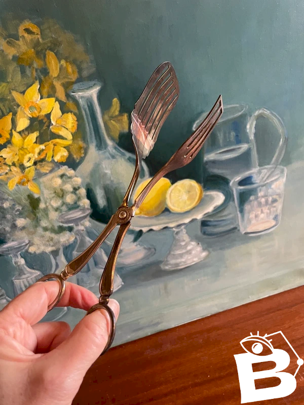 Cake tongs or petit fours in silver-plated metal. I haven't cleaned it, original patina. Silver Plated - Sheffield England Length 22.5cm.