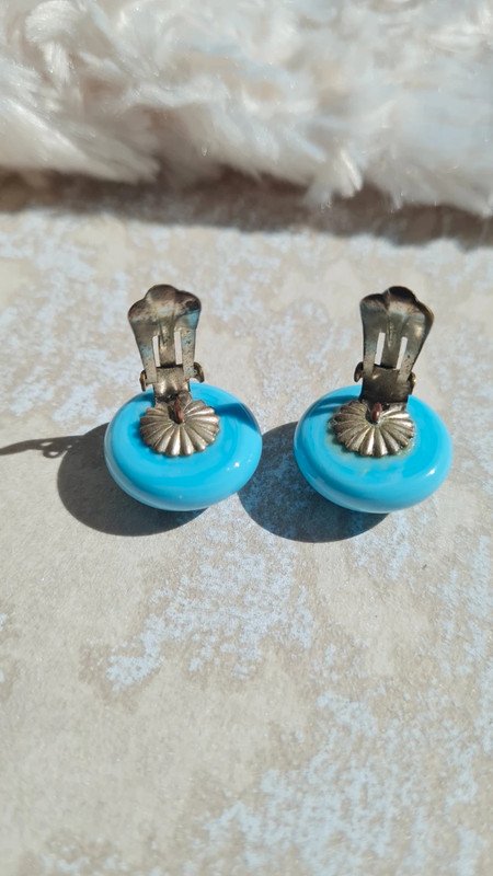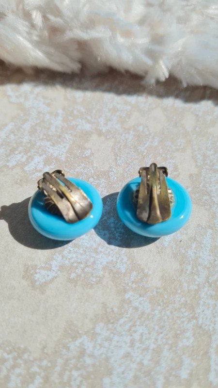 Above 25€, please choose a carrier if possible. Take the opportunity to buy in bulk: - 5 items - 10% - 10 items - 20% - 20 items - 30%. Please check the photos for imperfections. Dimension width: 2 cm #earrings #clips #jewelry #gift #vintage #glasspasteclips #vintagejewelry #glasspaste #glasspasteearrings #skyblue...
