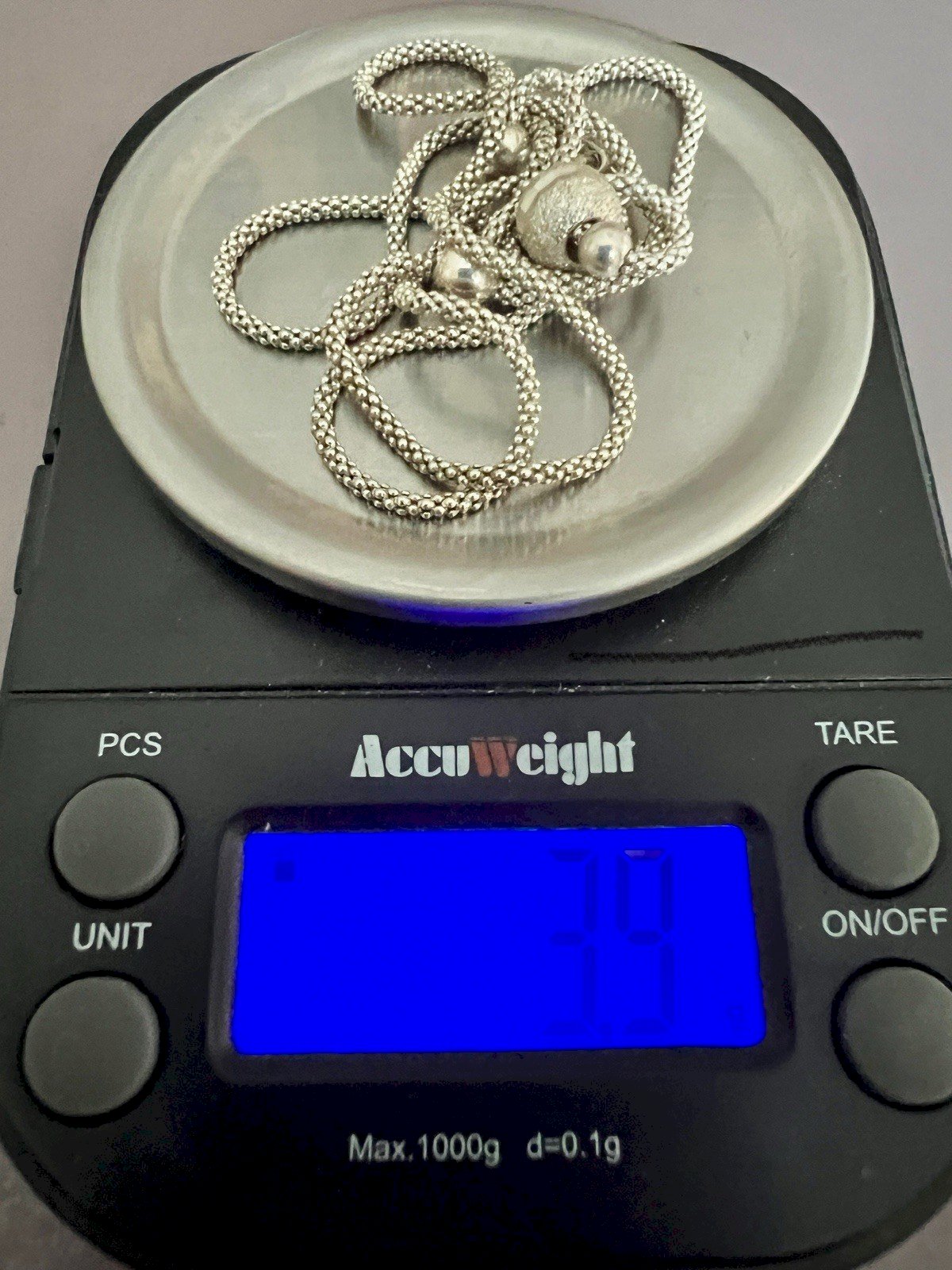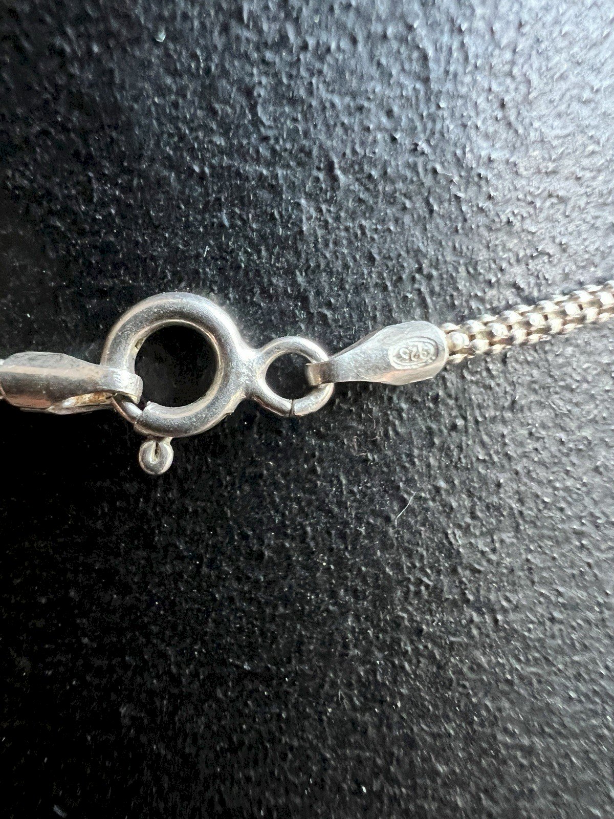 vintage 925 silver solid necklace marked with a pearl pendant. Condition: Used: Item has been worn. ...Used: Item has been worn. any possible imperfections. Type: Necklace with pendant Theme: Pearls Dominant color: Silver Dominant stone: None Brand: Vintage Material: None Metal: Sterling silver Length: 41-45 cm