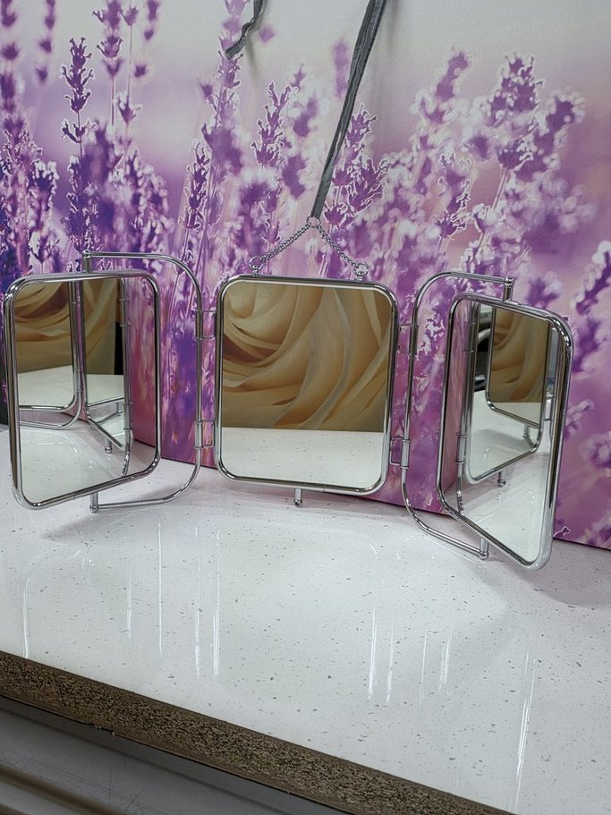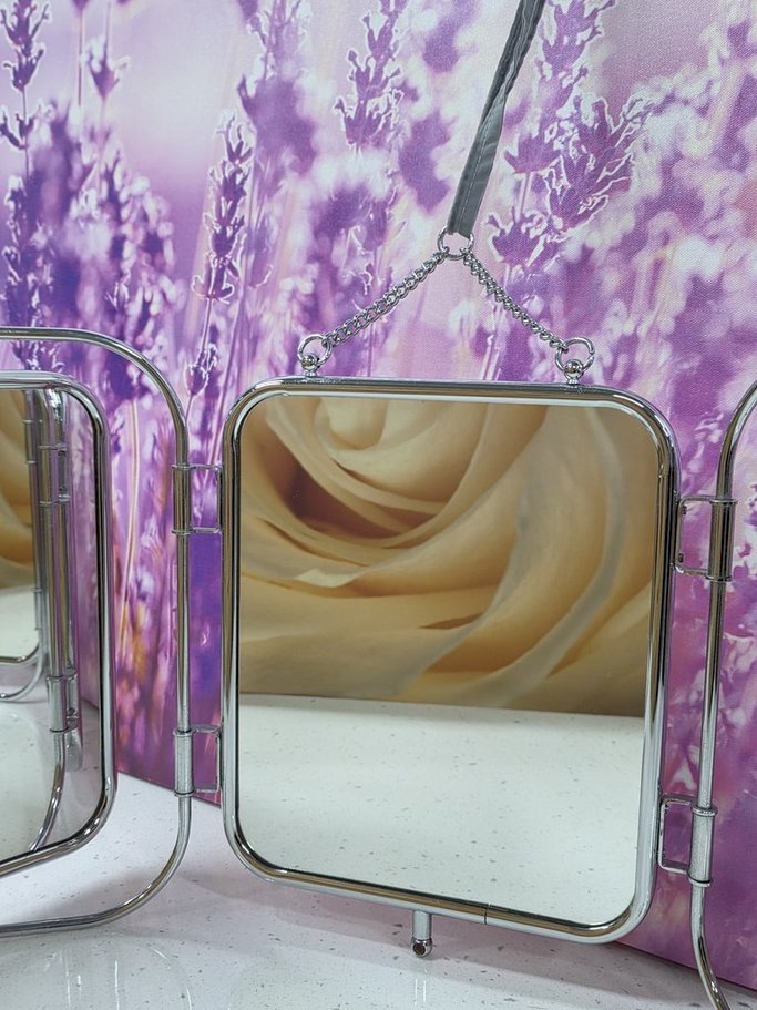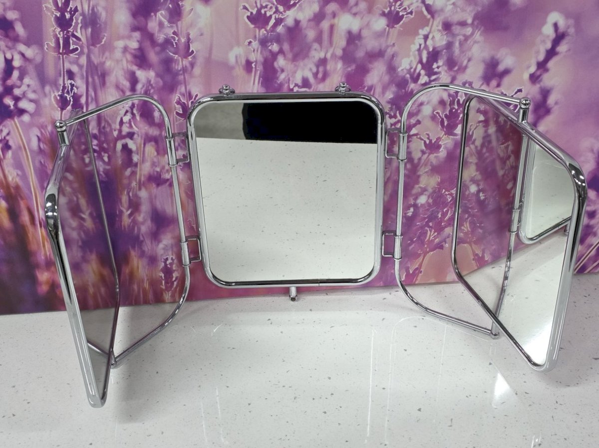 antique barber mirror / triple makeup triptych, 3 panels, can be placed or hung, adjustable position, it folds, in perfect condition, dimensions of one mirror 24.5x20.5cm